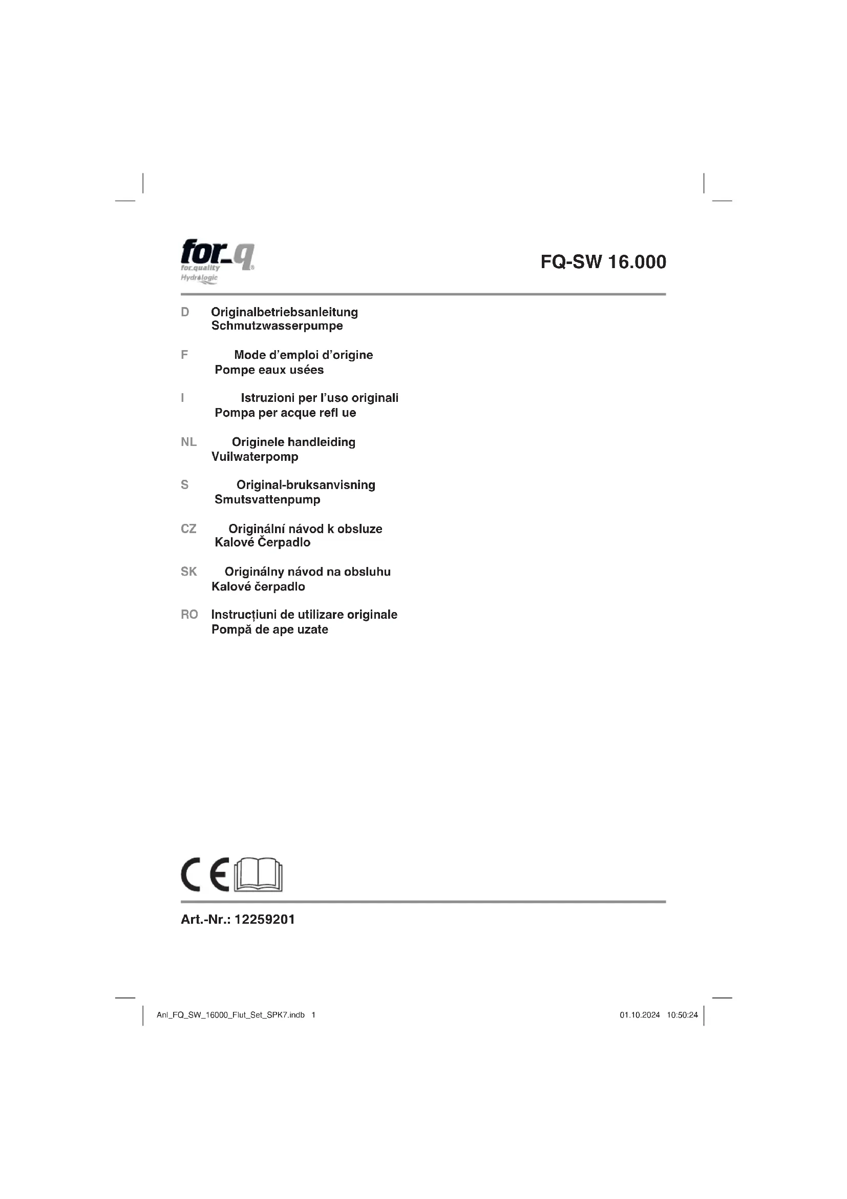 FQ-SW 16.000 - Pompe à eau For_Q - Notice d'utilisation et mode d'emploi gratuit