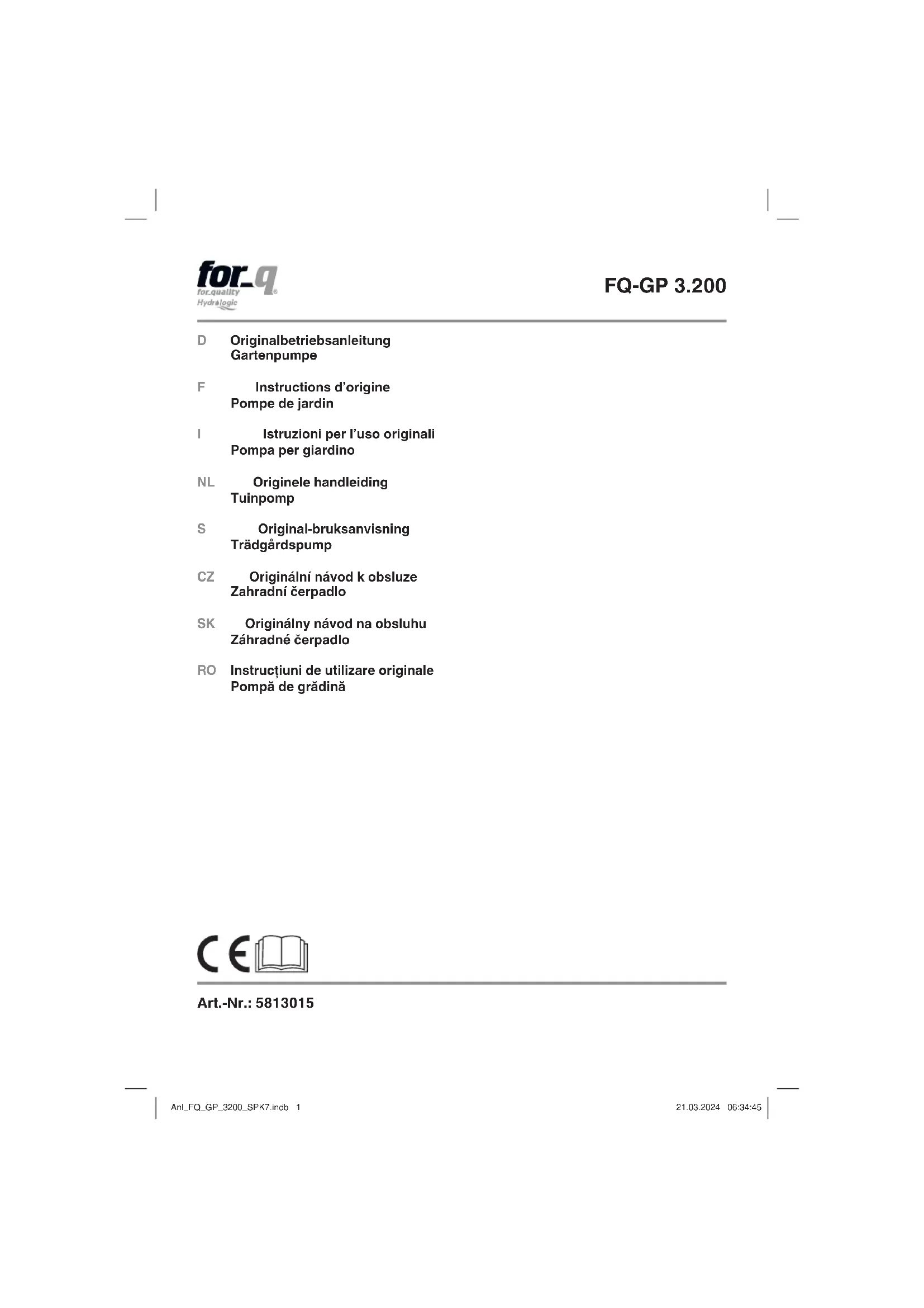 FQ-GP 3.200 - Pompe à eau For_Q - Notice d'utilisation et mode d'emploi gratuit