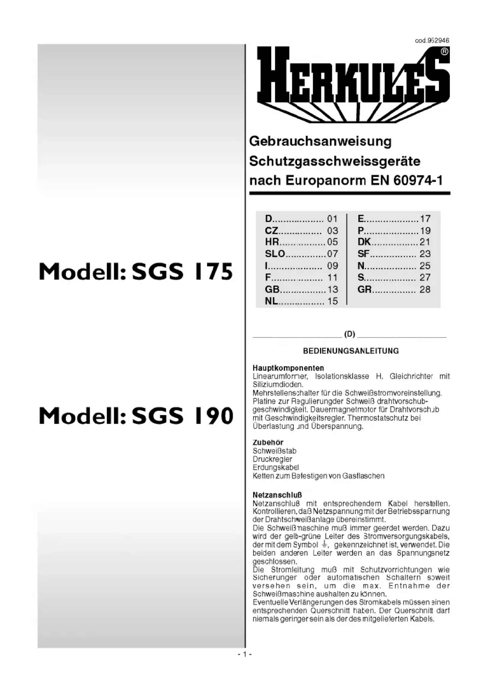 SGS 190 - Poste à souder Herkules - Notice d'utilisation et mode d'emploi gratuit