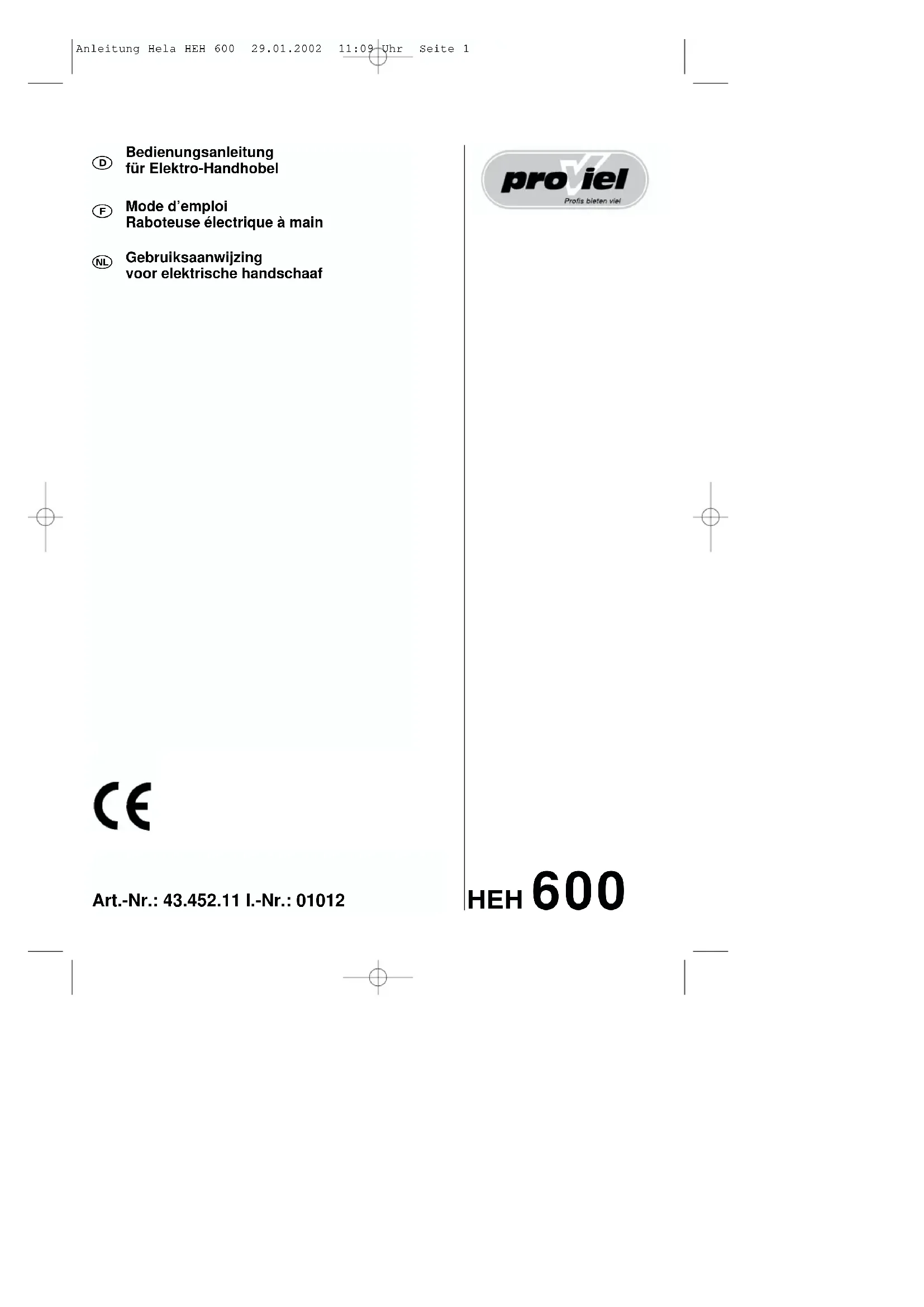 HEH 600 - Rabot Proviel - Notice d'utilisation et mode d'emploi gratuit