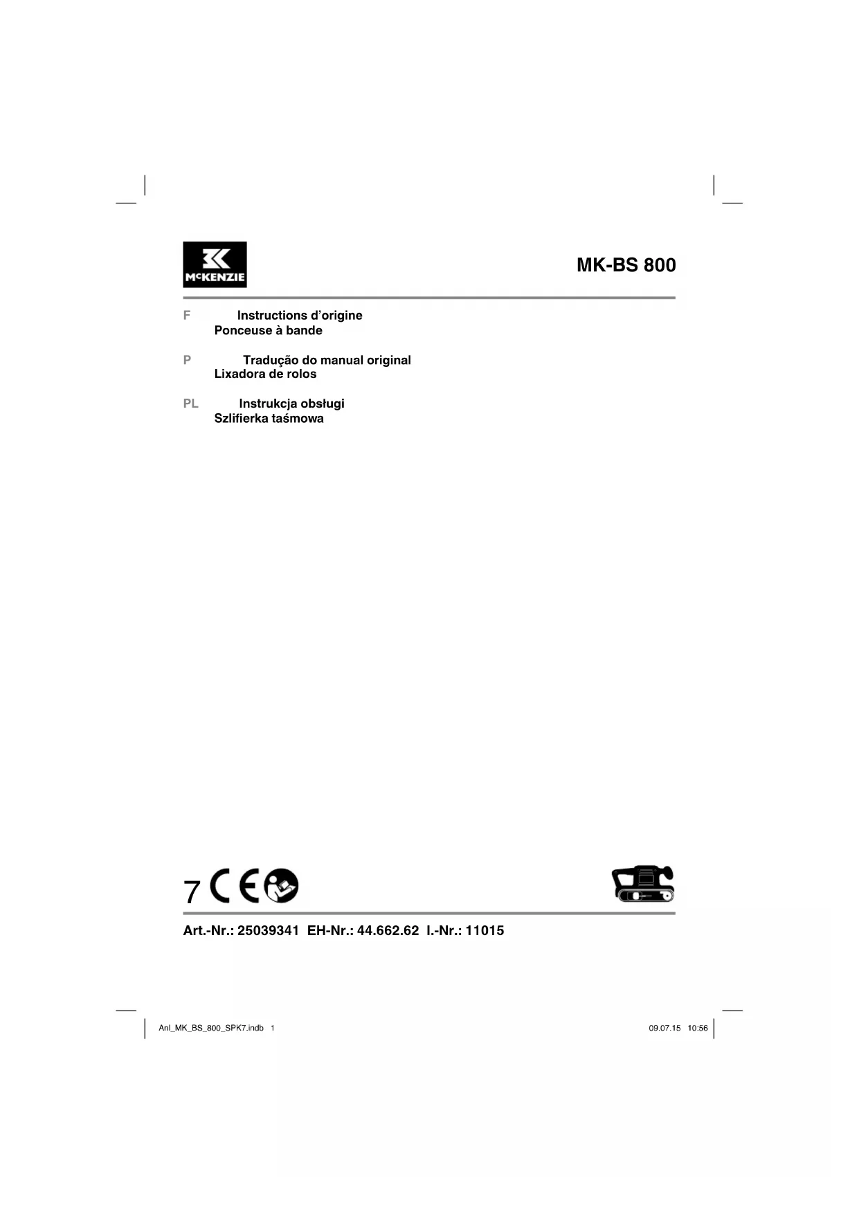 MK-BS 800 - Ponceuse McKenzie - Notice d'utilisation et mode d'emploi gratuit