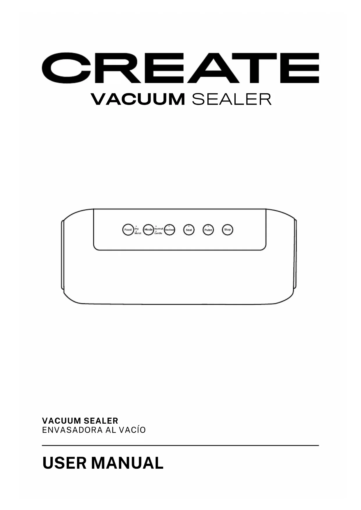 Retrouvez gratuitement la notice de l'appareil VACUUM SEALER Create au format PDF.
