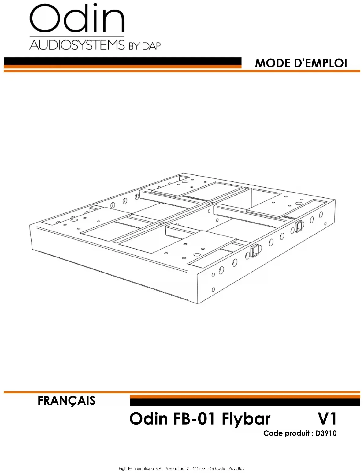 Site web : http://www.odin-audiosystems.com/ Adresse électronique : service@highlite.nl12 Code produit : D3910 Odin FB-01 Flybar Remarques13 Code produit : D3910 Odin FB-01 Flybar14 Code produit : D3910 Odin FB-01 Flybar©2016 ODIN