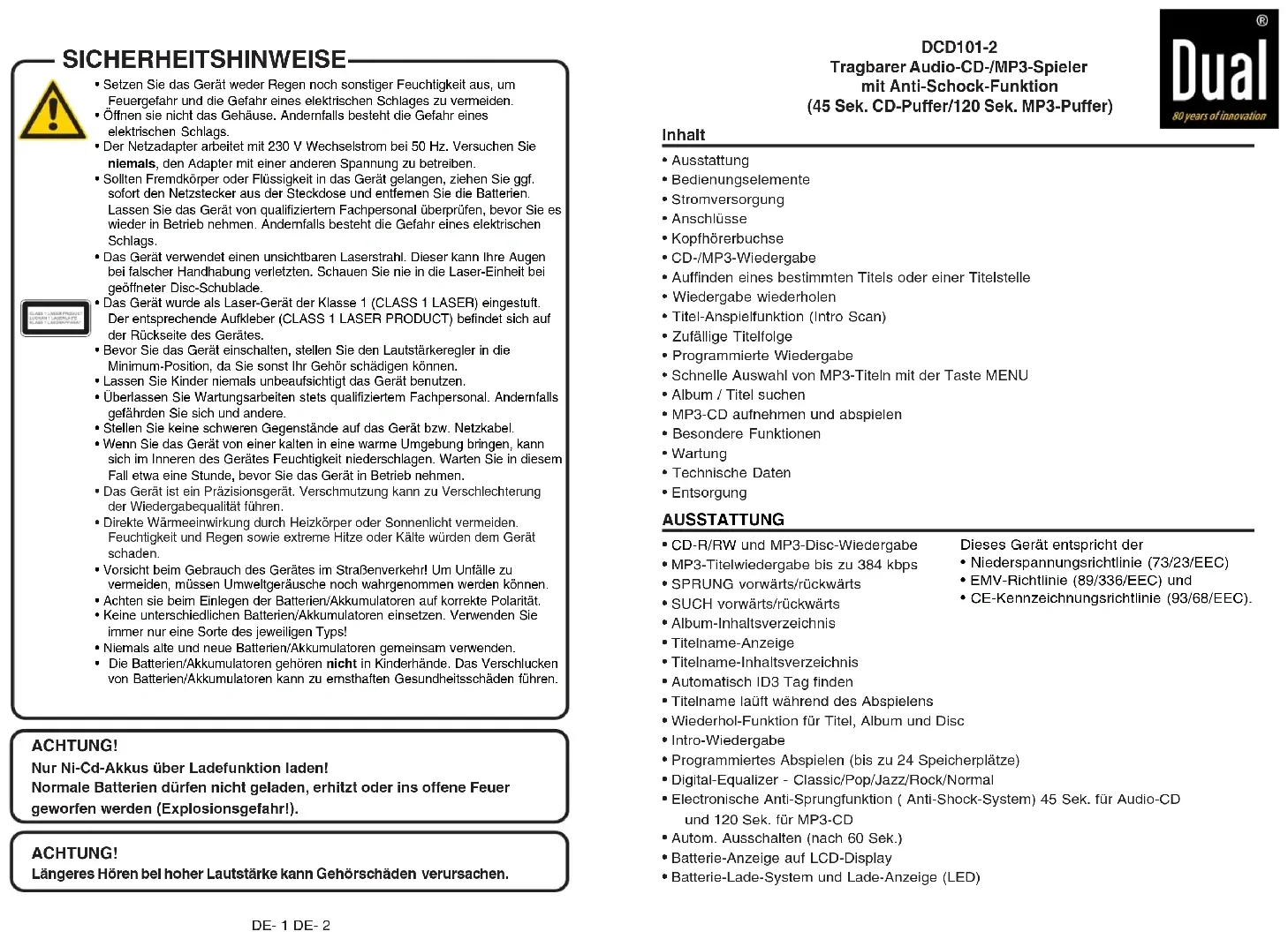 Retrouvez gratuitement la notice de l'appareil DCD 101-2 DUAL au format PDF.