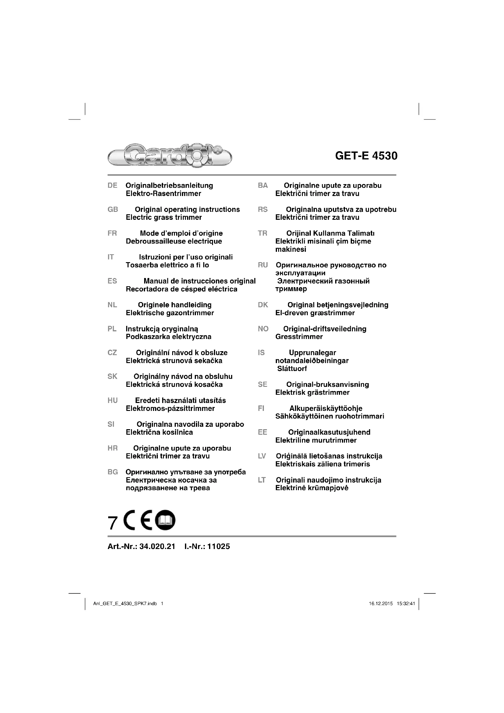 Retrouvez gratuitement la notice de l'appareil GET-E 4530 Gardol au format PDF.