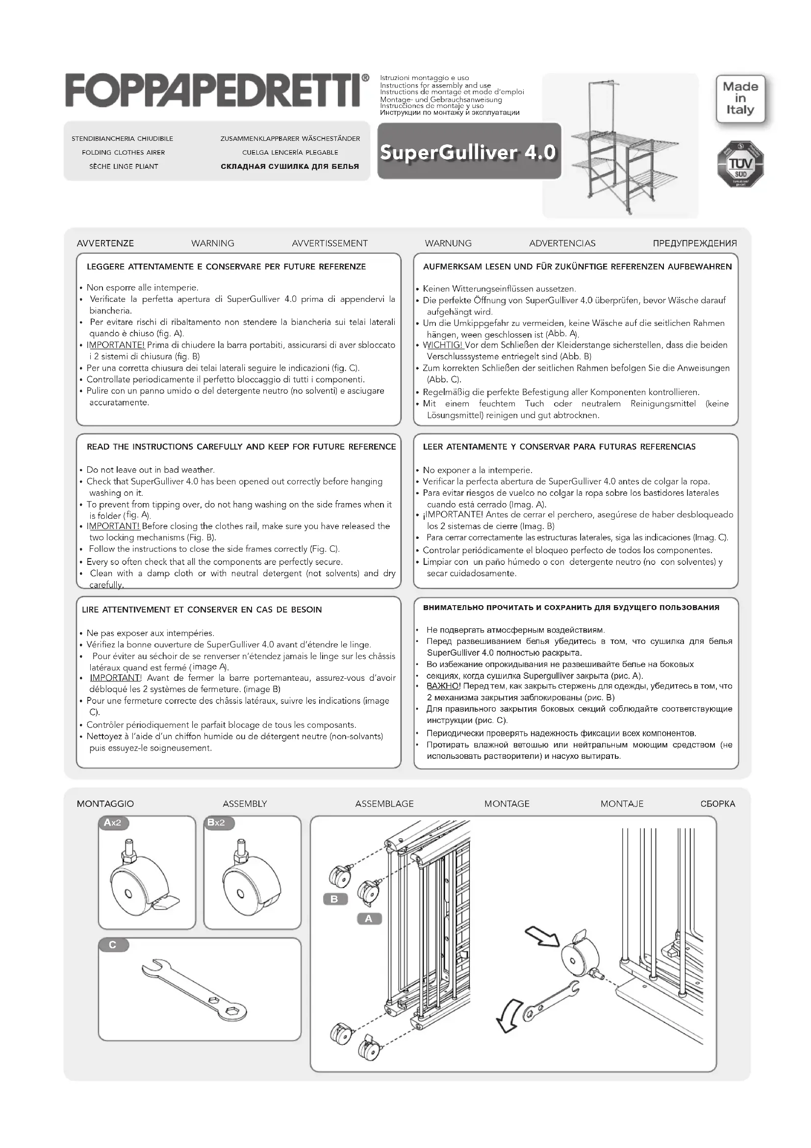 Retrouvez gratuitement la notice de l'appareil SuperGulliver 4.0 Foppapedretti au format PDF.