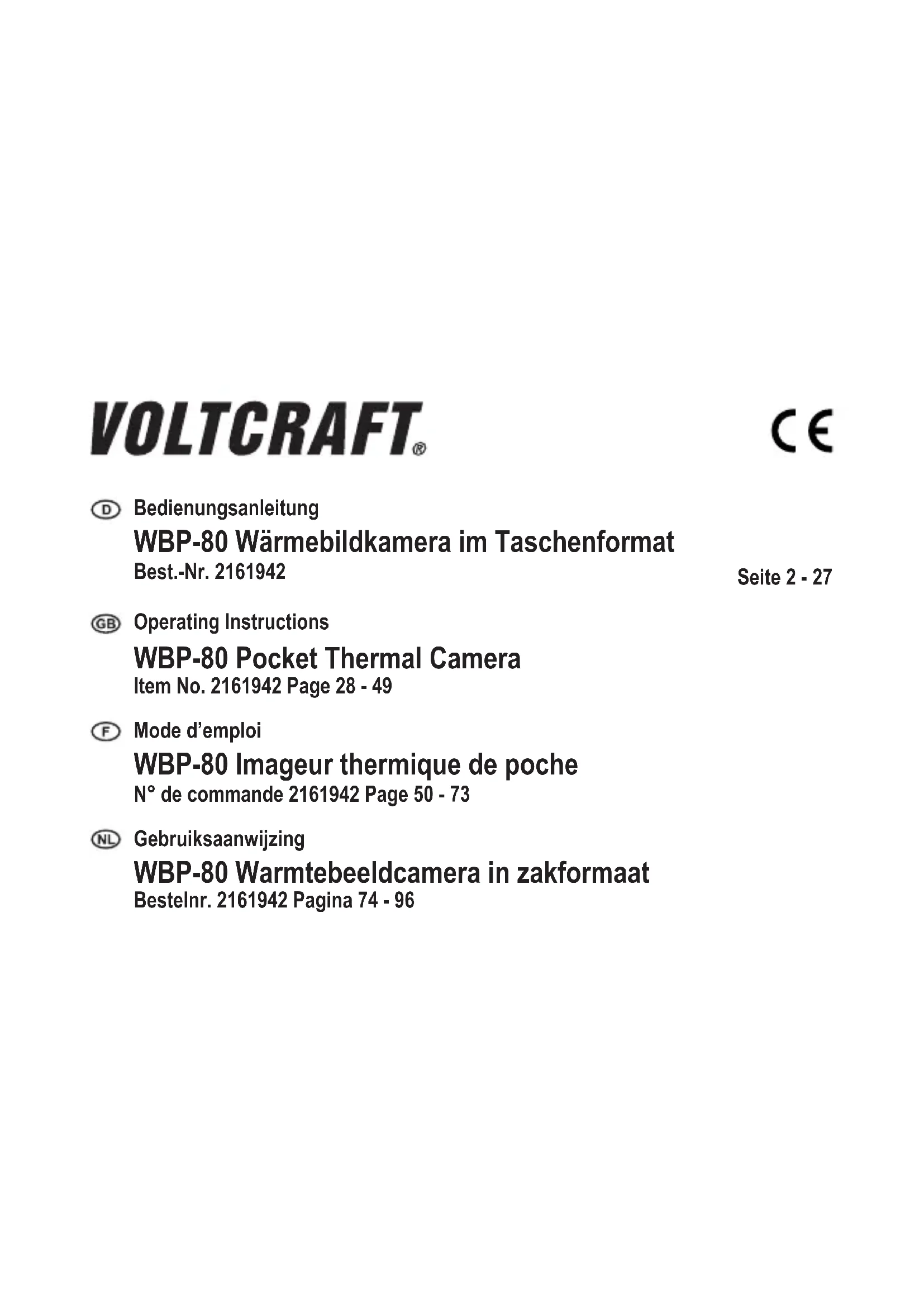 MODE D'EMPLOI WBP-80 VOLTCRAFT