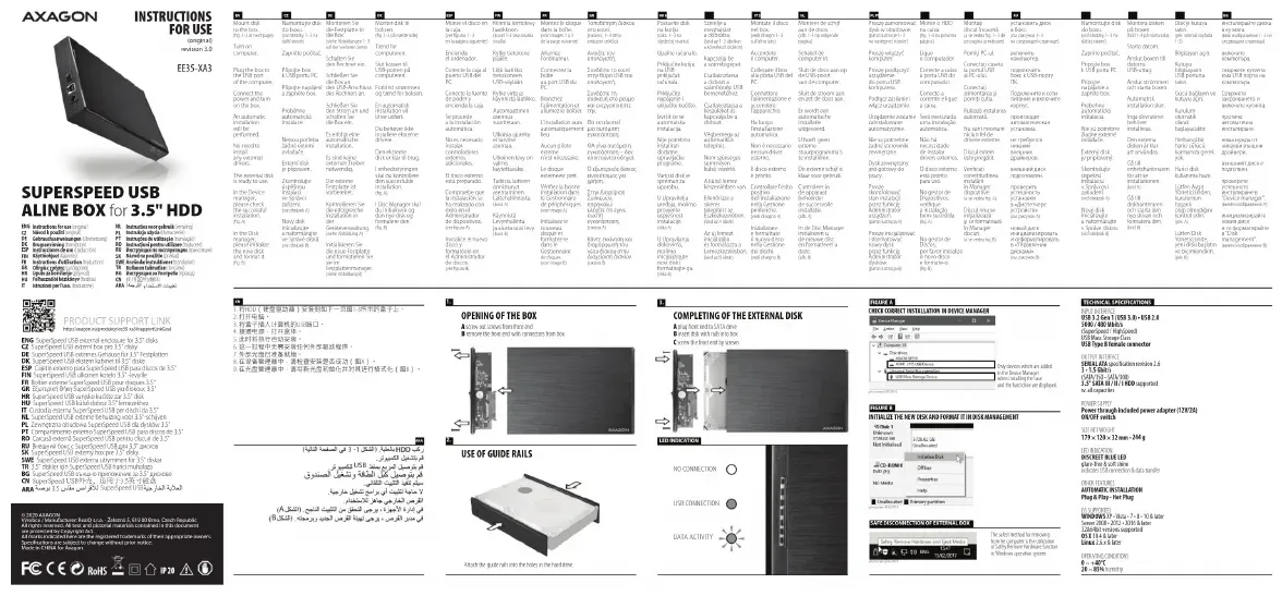 EE35-XA3 - Disque dur externe Axagon - Notice d'utilisation et mode d'emploi gratuit