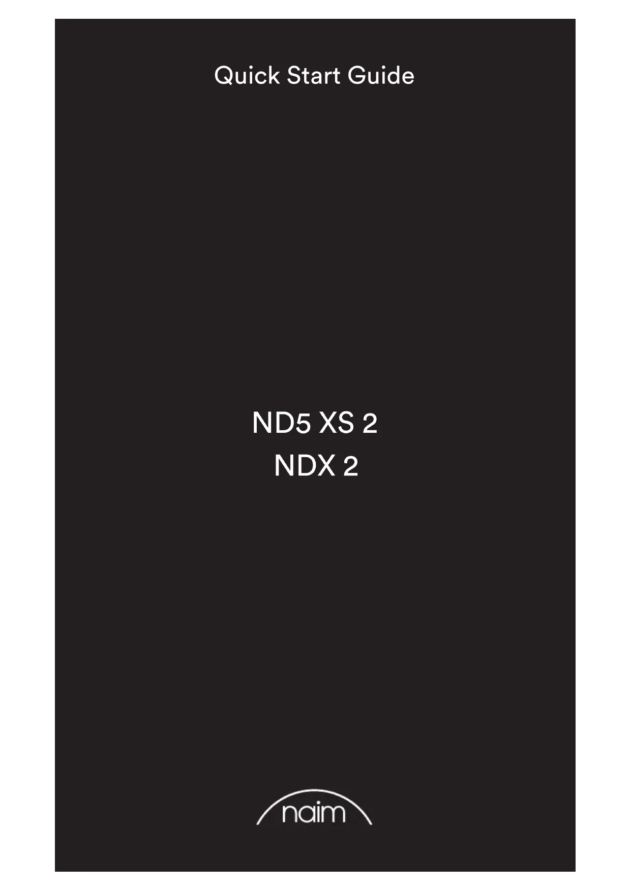 Visite el sitio web de Naim si necesita asistencia adicional y guías de configuración y soporte interactivas. www.naimaudio.com/customer-support Contacto streamer-support@naimaudio.com Línea de asistencia: +44 (0) 333 321 9923 (Reino Unido) +1 800 961 5681 (EE. UU. y Canadá) Français 1 Liste des éléments fournis 1 x NDX 2 ou 1 x ND5 XS 2, 1 x documentation, 1 x chiffon nettoyant (NDX 2 uniquement), 1 x télécommande (NDX 2 uniquement), 4 x piles AAA, 1 x câble d'alimentation, 1 x cavalier pour câble Burndy (NDX 2 uniquement), 1 x adaptateur BNC - RCA, 1 x câble d'interconnexion (DIN 5 broches 5 broches), 1 x antenne Bluetooth, 2 x antennes Wi-Fi 2 Faites connaissance avec votre ND5 XS 2 Ces schémas de l'avant et de l'arrière présentent les caractéristiques opérationnelles et les connecteurs de votre nouveau ND5 XS 2. 2 Faites connaissance avec votre NDX 2 Ces schémas de l'avant et de l'arrière présentent les caractéristiques opérationnelles et les connecteurs de votre nouveau NDX 2. 3 Télécommande (NDX 2 uniquement) 4 Une configuration simple Vous aurez besoin d'un système hi-fi, d'un câble réseau, d'un routeur avec Wi-Fi connecté à Internet et d'un smartphone ou d'une tablette. 5 ND5 XS 2 – Connexion et alimentation (A) Commencez par éteindre votre système hi-fi. (B) Branchez le câble réseau Ethernet du routeur vers le ND5 XS 2 (s'il n'y en a pas, branchez deux antennes Wi-Fi à la place) et 1 antenne Bluetooth à l'arrière du ND5 XS 2. (C) Utilisez le câble d'interconnexion (DIN 5 broches 5 broches) pour raccorder le lecteur à l'amplificateur intégré de votre système hi-fi. (D) Branchez le câble d'alimentation au connecteur d'alimentation de l'appareil et au secteur. (E) Allumez le lecteur réseau en appuyant sur le bouton de mise en marche à l'avant. (F) Rallumez votre système hi-fi. 5 NDX 2 – Connexion et alimentation (A) Commencez par éteindre votre système hi-fi. (B) Branchez le câble réseau Ethernet du routeur vers le NDX 2 (s'il n'y en a pas, branchez deux antennes Wi-Fi à la place) et 1 antenne Bluetooth à l'arrière du NDX 2. (C) Installez le cavalier pour câble Burndy à l'arrière de l'appareil. (D) Utilisez le câble d'interconnexion (DIN 5 broches 5 broches) pour raccorder le lecteur au préamplificateur de votre système hi-fi. (E) Branchez le câble d'alimentation au connecteur d'alimentation de l'appareil et au secteur. (F) Allumez le lecteur réseau en appuyant sur le bouton de mise en marche à l'avant. (G) Rallumez votre système hi-fi. 5 Connexion du NDX 2 avec une alimentation externe Les performances du NDX 2 peuvent facilement êtreoptimisées en y ajoutant une alimentation externe, pour obtenir une amélioration significative de la qualité du son. Il est possible de raccorder une alimentation CD555 PS, XPS ou XP5 XS au NDX 2 à l'aide d'un câble SXPS Burndy. Lorsqu'il est utilisé avec une alimentation externe, le NDX 2 doit être débranché du secteur. Débranchez-le du secteur avant de le raccorder à l'alimentation externe. 6 Appariement de la télécommande (NDX 2 uniquement) Une fois votre appareil branché et allumé, vous devez apparier la télécommande. Pour cela, appuyez sur le bouton de lecture en façade puis maintenez enfoncé le bouton d'accueil de la télécommande pendant 3 secondes. La télécommande est à présent appariée avec l'appareil et prête à être utilisée. 7 Téléchargement de l'application Naim Téléchargez et installez l'application Naim pour votre appareil iOS ou Android. Lancez l'application Naim et suivez les instructions pour configurer le produit. 8 Lecture de musique Accédez à vos stations radio Internet et vos services de streaming préférés, lisez votre musique enregistrée sur un serveur Naim (tel que l'Uniti Core) et faites de votre lecteur réseau la source de votre système multipièces. Votre lecteur réseau comprend aussi des connexions numériques, permettant le raccordement de vos sources externes. A. Services de streaming en ligne Spotify Connect (1) Connectez votre appareil partenaire à votre réseau wifi. (2) Ouvrez l'application Spotify sur votre téléphone, tablette ou ordinateur portable à l'aide du même réseau wifi. (3) Lancez un titre et sélectionnez Appareils disponibles. (4) Sélectionnez votre appareil partenaire et écoutez votre musique. B. Streaming depuis un serveur de musique C. Serveur de musique pour un streaming multipièces D. Lecture de sources externes Entrées numériques Quatre entrées numériques haute résolution jusqu'à 24 bits / 192 kHz (S/PDIF), permettant une connexion optimale à des sources externes. 9 Autres conseils et FAQ Pour en découvrir plus, et notamment des guides interactifs pour la configuration et le support, visitez le site Web de Naim. www.naimaudio.com/customer-support Contact streamer-support@naimaudio.com Assistance téléphonique: +44 (0) 333 321 9923 (RU) +1 800 961 5681 (États-Unis et Canada) Italiano 1 Contenuto della confezione NDX 2 o x ND5 XS 2, Cartella con i documenti, Panno per la pulizia (solo NDX 2), Telecomando (solo NDX 2), 4 pile AAA, Cavo di alimentazione, Connettore Burndy (solo NDX 2), Adattatore BNC > RCA, Cavo di interconnessione (DIN 5-5 pin), Antenna Bluetooth, Antenna Wi-fi 2 ND5 XS 2 Le immagini che raffigurano la parte anteriore e quella posteriore illustrano le caratteristiche operative e le prese del tuo nuovo ND5 XS 2. 2 NDX 2 Le immagini che raffigurano la parte anteriore e quella posteriore illustrano le caratteristiche operative e le prese del tuo nuovo NDX 2. 3 Il telecomando (solo NDX 2) 4 Facile da configurare Avrai bisogno di un sistema hi-fi, di un cavo di rete, di un router collegato a Internet e di uno smartphone o di un tablet. 5 ND5 XS 2 Collegamento e alimentazione (A) Per prima cosa, spegni il tuo il sistema hi-fi. (B) Collega il cavo di rete Ethernet dal router all'ND5 XS 2 (se non è disponibile, collega 2 antenne wi-fi) e un'antenna Bluetooth dietro all