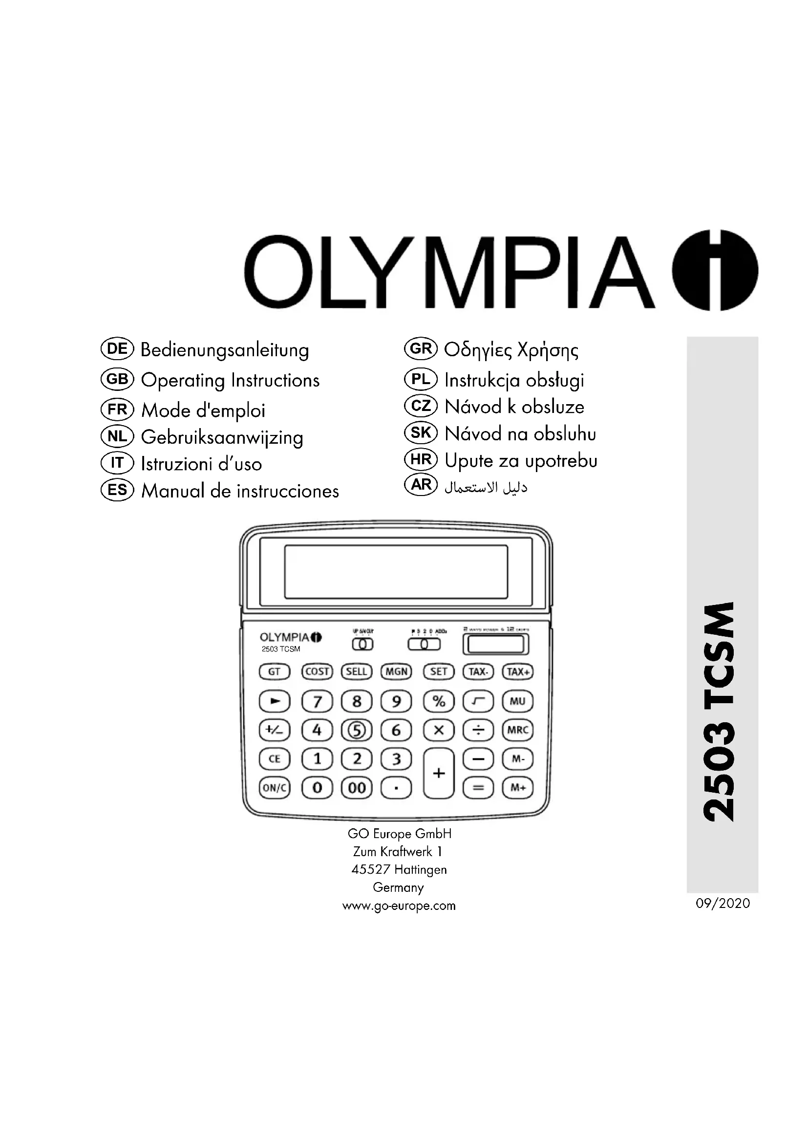 2503 TCSM - Calculatrice OLYMPIA - Notice d'utilisation et mode d'emploi gratuit