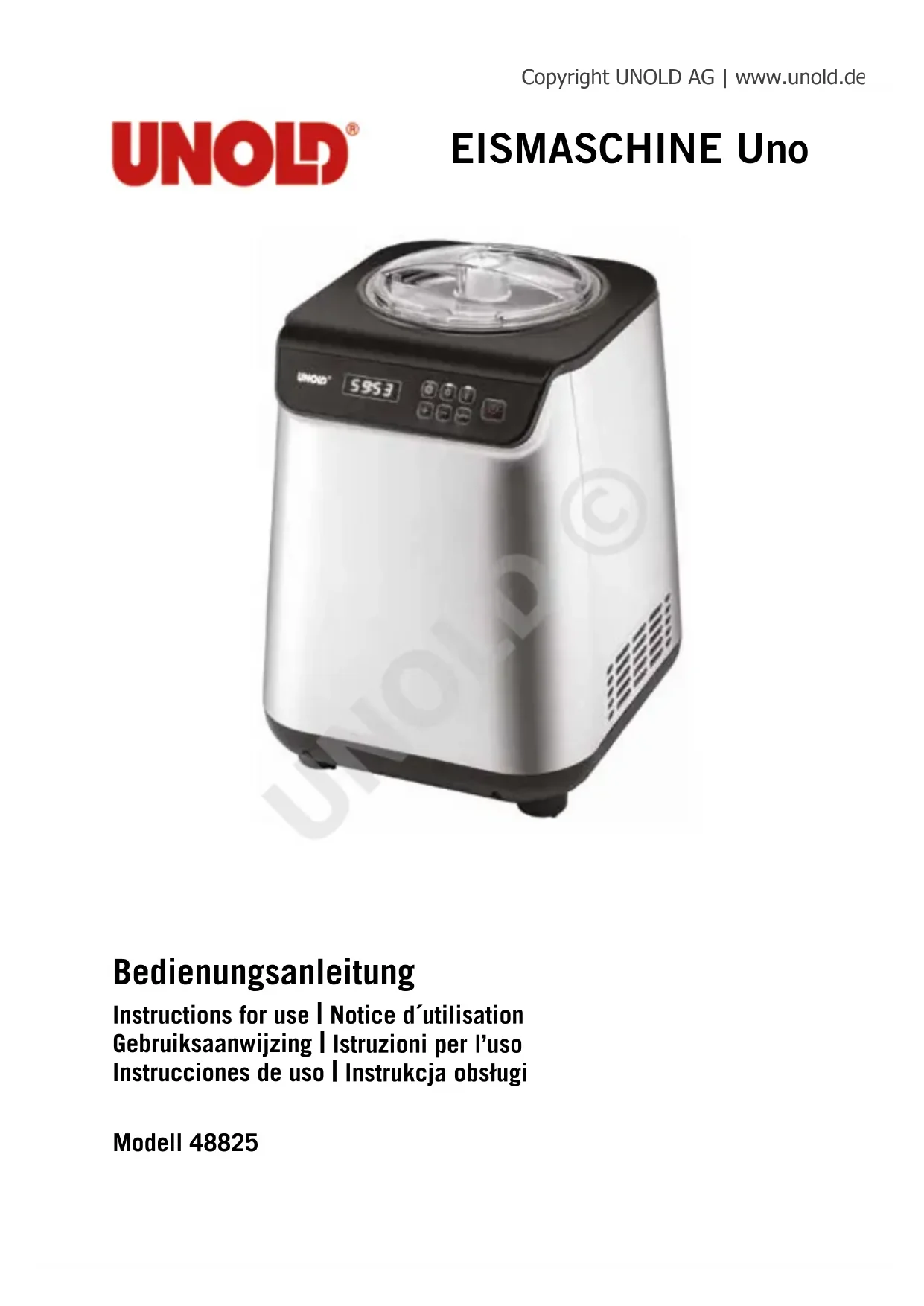 Uno 48825 - Machine à glace UNOLD - Notice d'utilisation et mode d'emploi gratuit