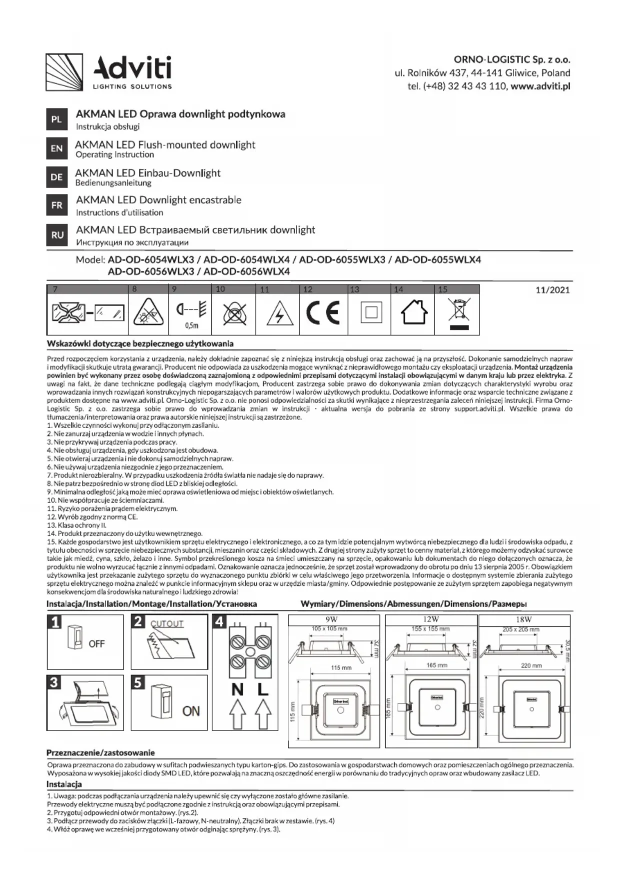 AD-OD-6054WLX3 - Lampe Adviti - Notice d'utilisation et mode d'emploi gratuit