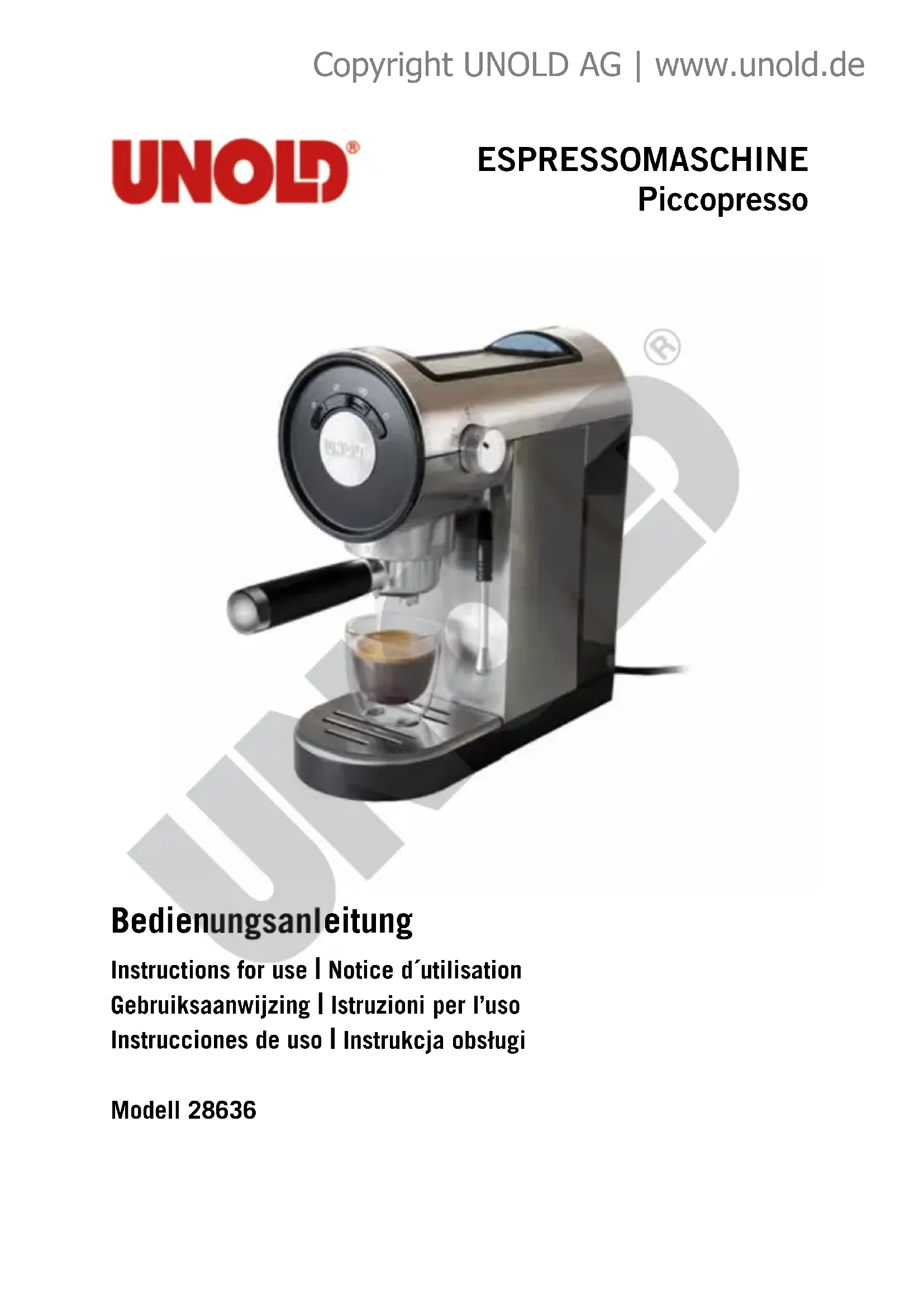 Retrouvez gratuitement la notice de l'appareil Piccopresso 28636 UNOLD au format PDF.