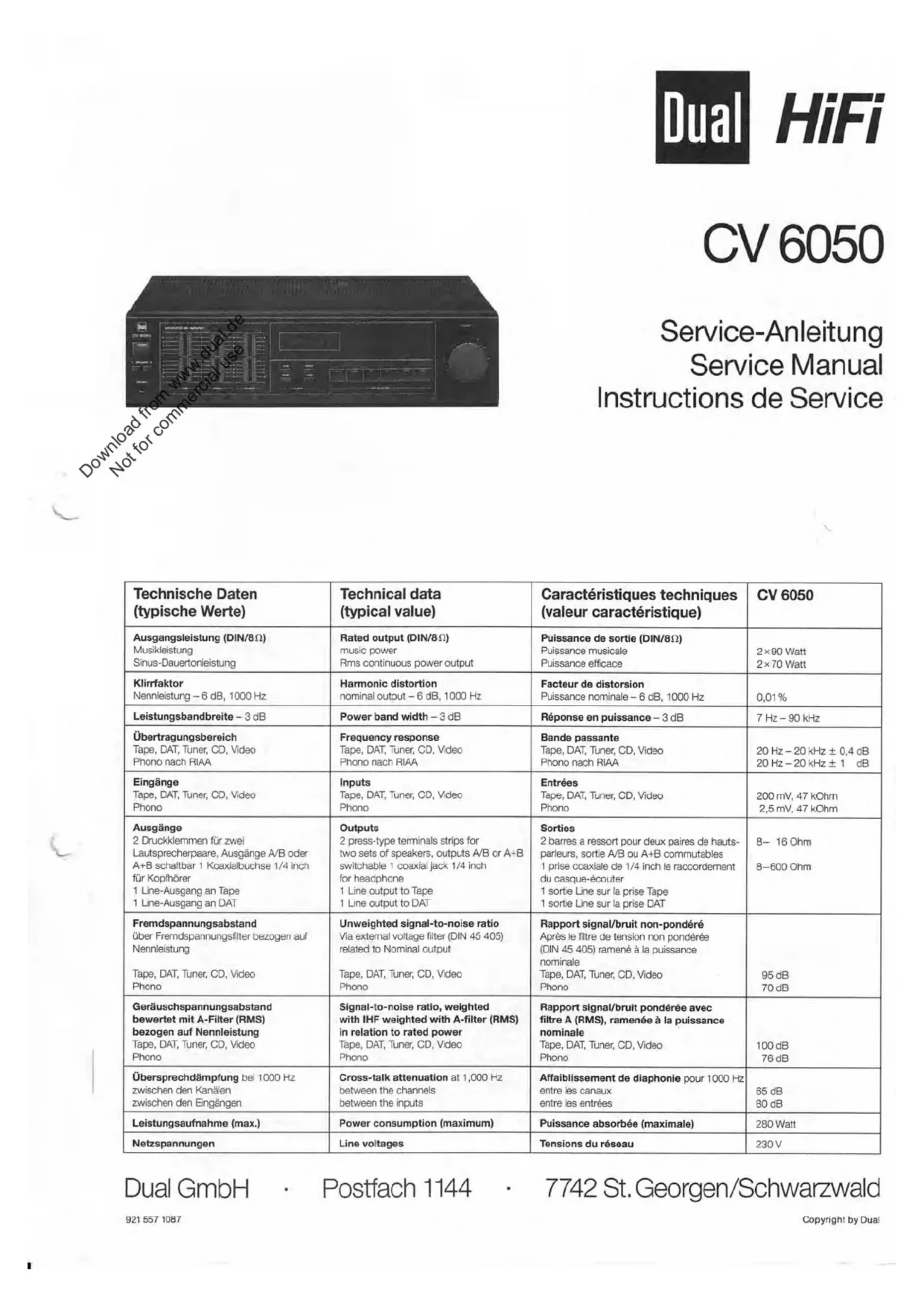 Retrouvez gratuitement la notice de l'appareil CV 6050 DUAL au format PDF.