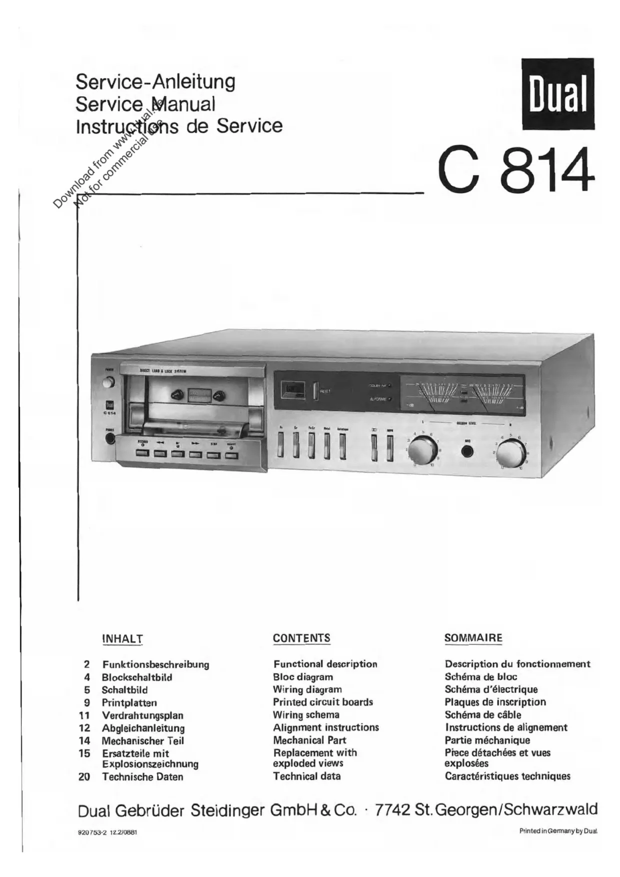 Téléchargez la notice de votre Non catégorisé au format PDF gratuitement ! Retrouvez votre notice C 814 - DUAL et reprennez votre appareil électronique en main. Sur cette page sont publiés tous les documents nécessaires à l'utilisation de votre appareil C 814 de la marque DUAL.