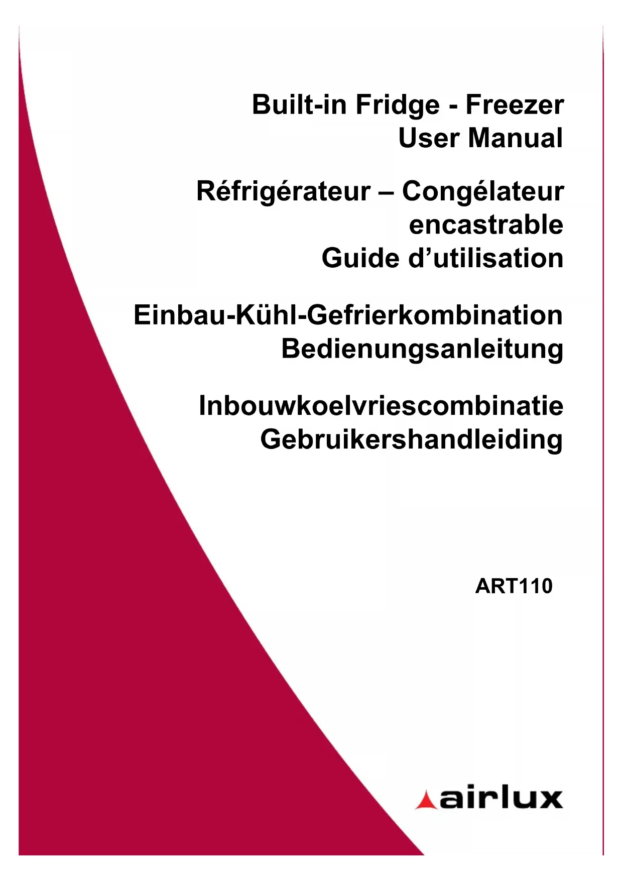 ART110 - Réfrigérateur AIRLUX - Notice d'utilisation et mode d'emploi gratuit