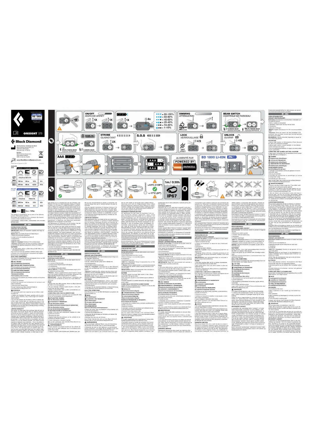 Onsight 375 - Lampe Black Diamond - Notice d'utilisation et mode d'emploi gratuit