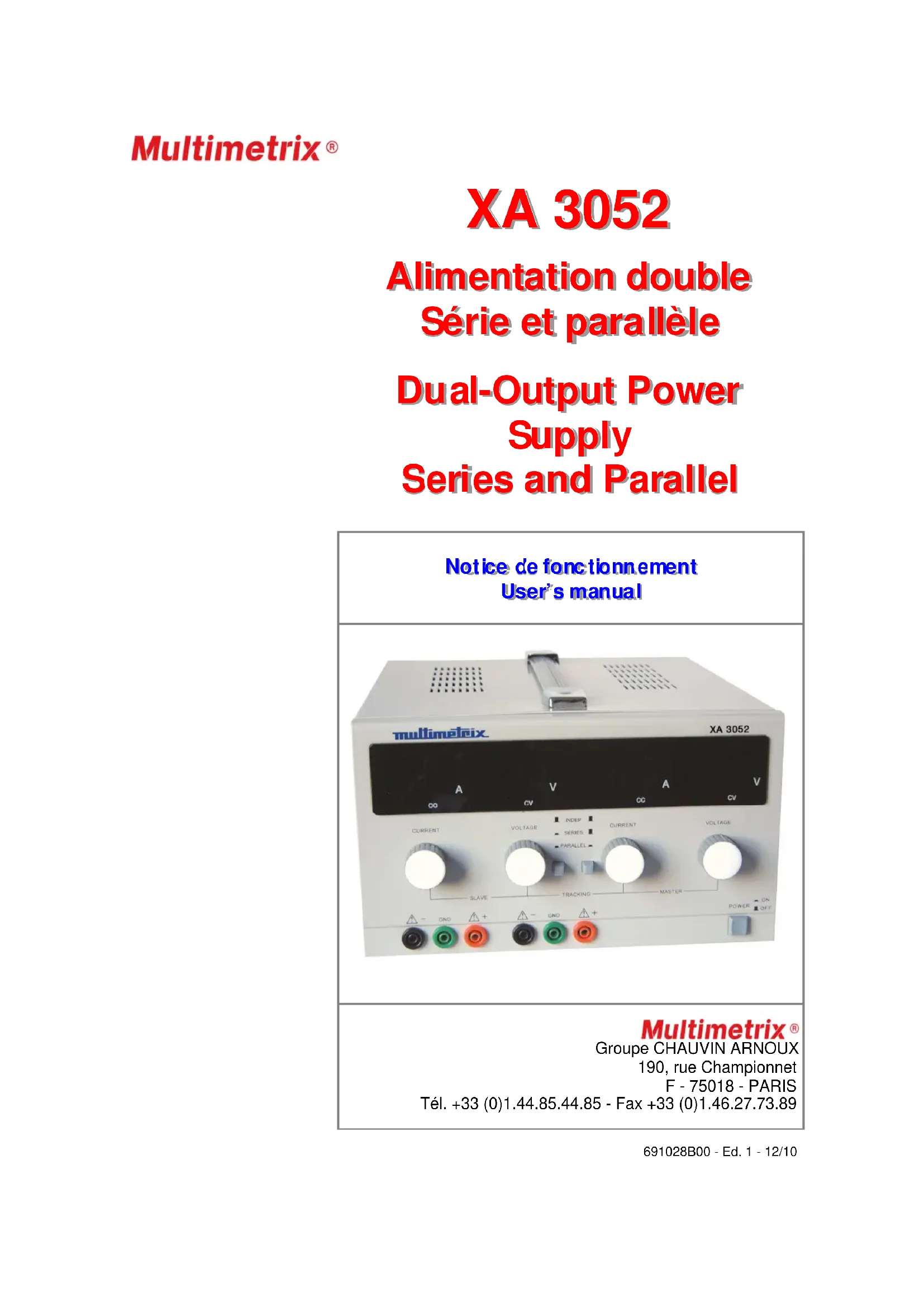 MODE D'EMPLOI XA3052 MULTIMETRIX