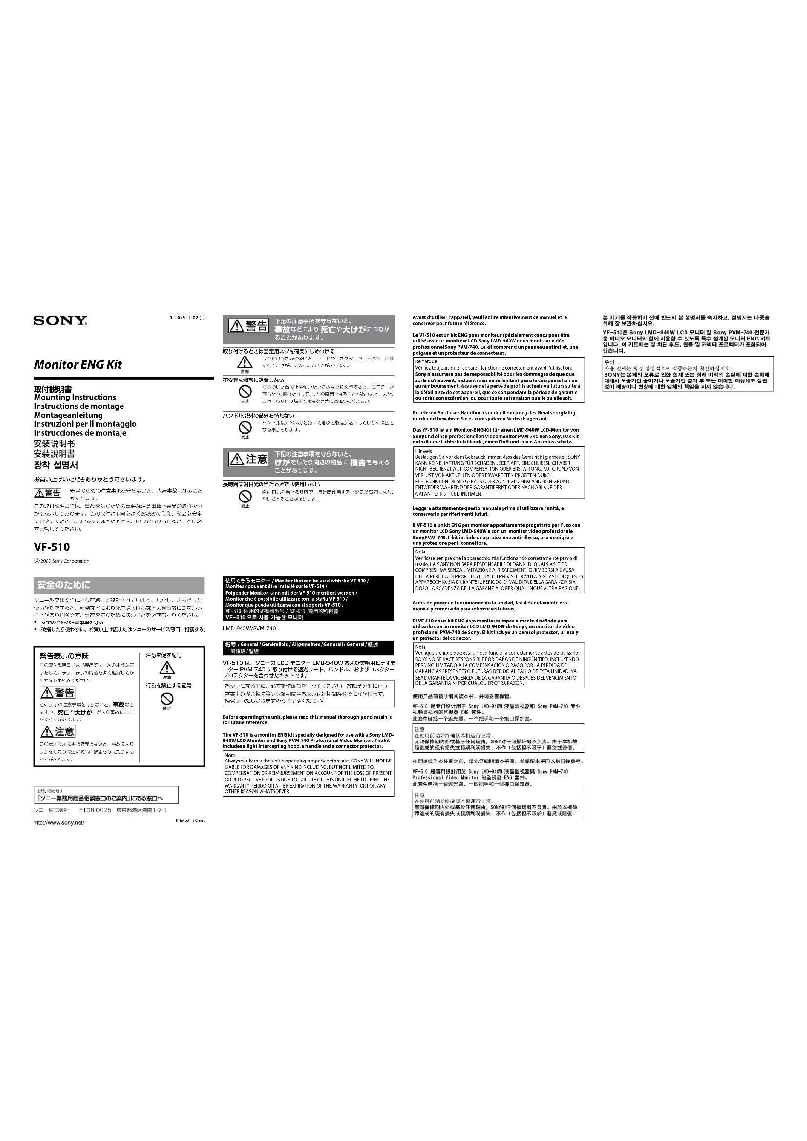 VF-510 - Non catégorisé SONY - Notice d'utilisation et mode d'emploi gratuit