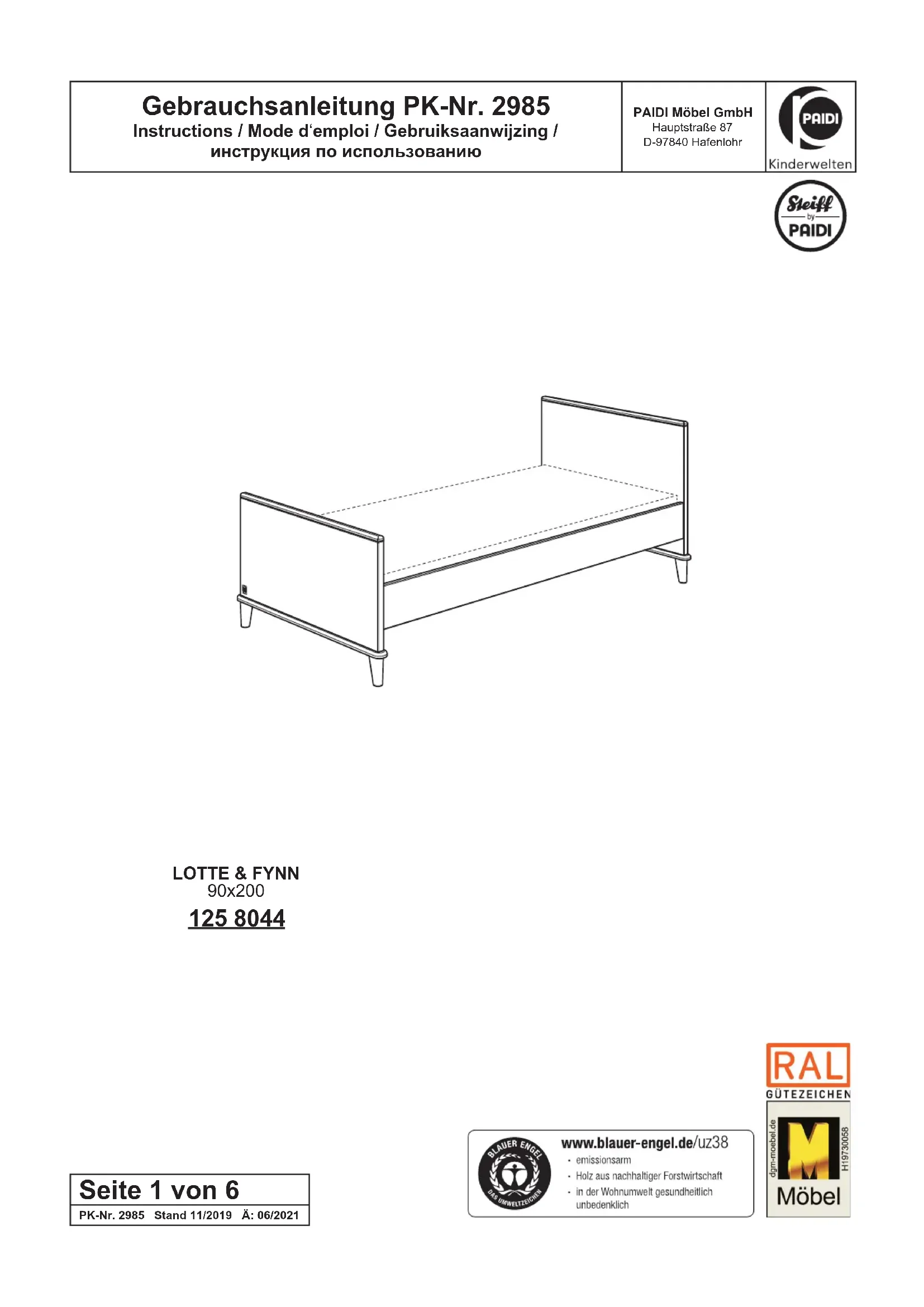 Lotte & Fynn - Lit-bébé Paidi - Notice d'utilisation et mode d'emploi gratuit