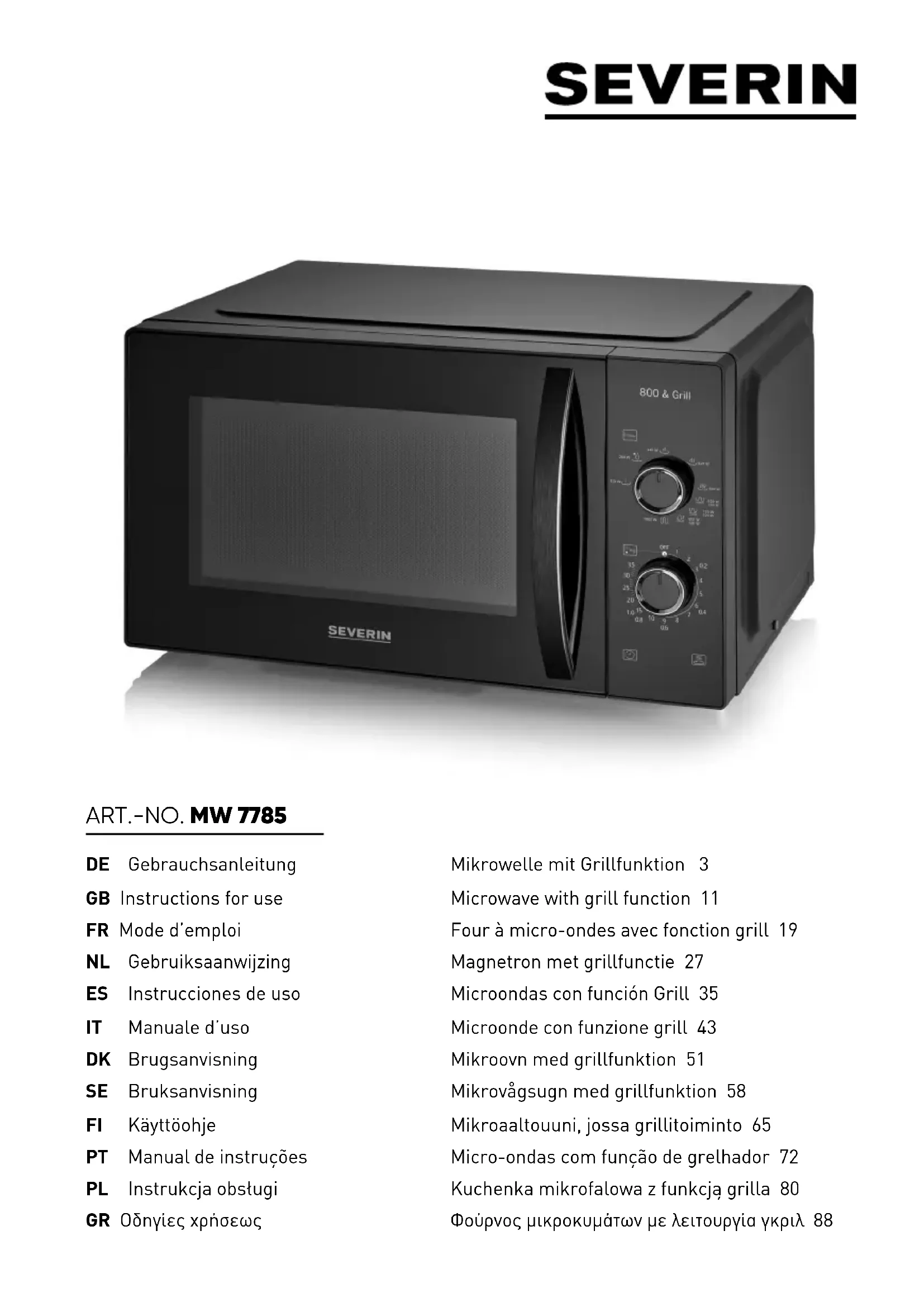 MW 7785 - Four à micro-ondes SEVERIN - Notice d'utilisation et mode d'emploi gratuit