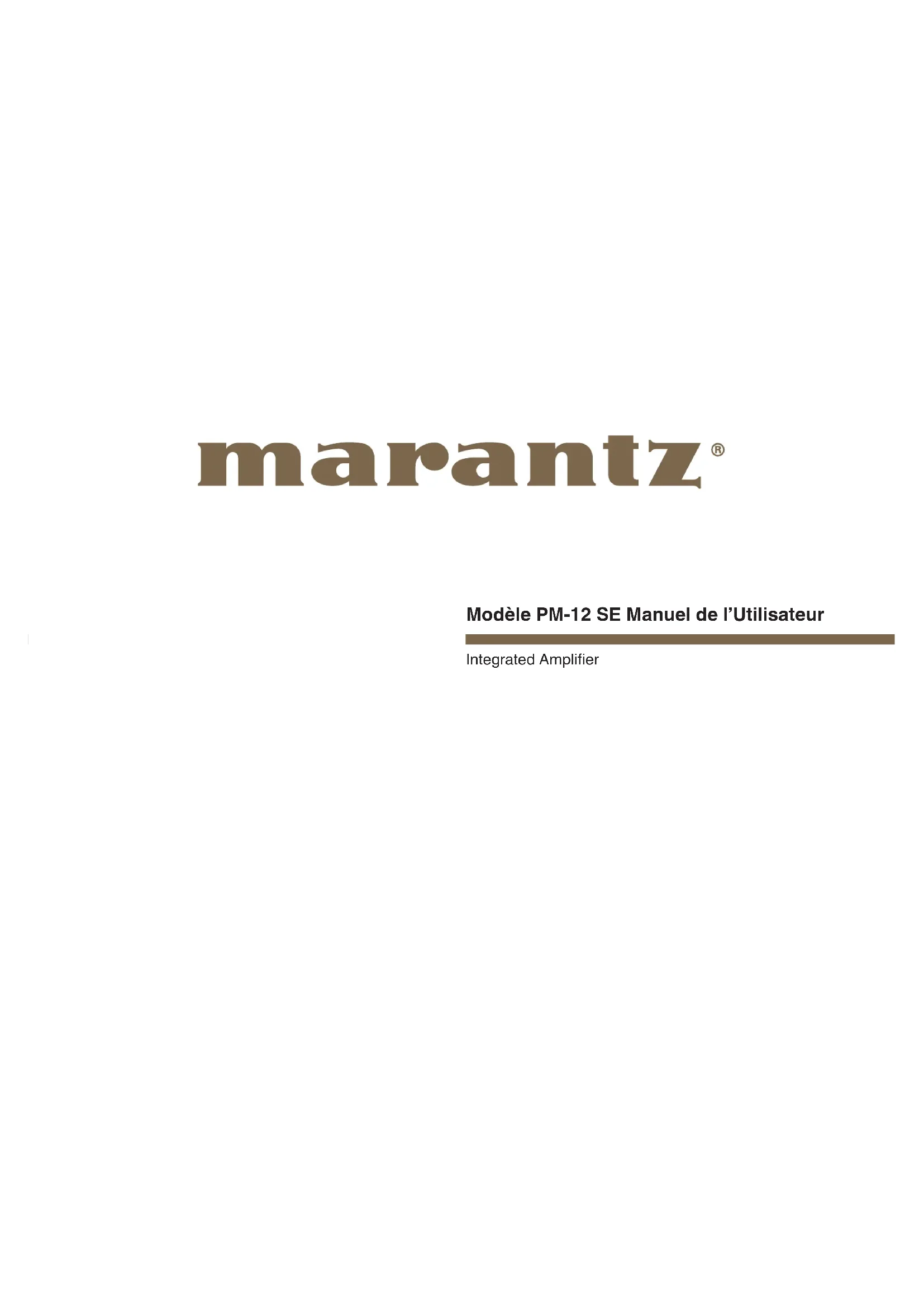 Téléchargez la notice de votre Recepteur au format PDF gratuitement ! Retrouvez votre notice PM-12 SE - MARANTZ et reprennez votre appareil électronique en main. Sur cette page sont publiés tous les documents nécessaires à l'utilisation de votre appareil PM-12 SE de la marque MARANTZ.