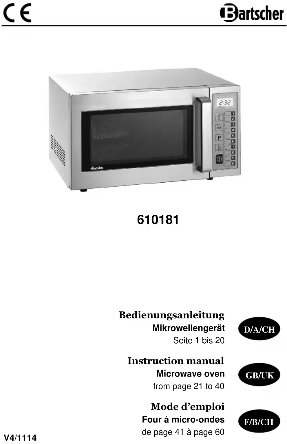 DIG 25l - Four à micro-ondes BARTSCHER - Notice d'utilisation et mode d'emploi gratuit