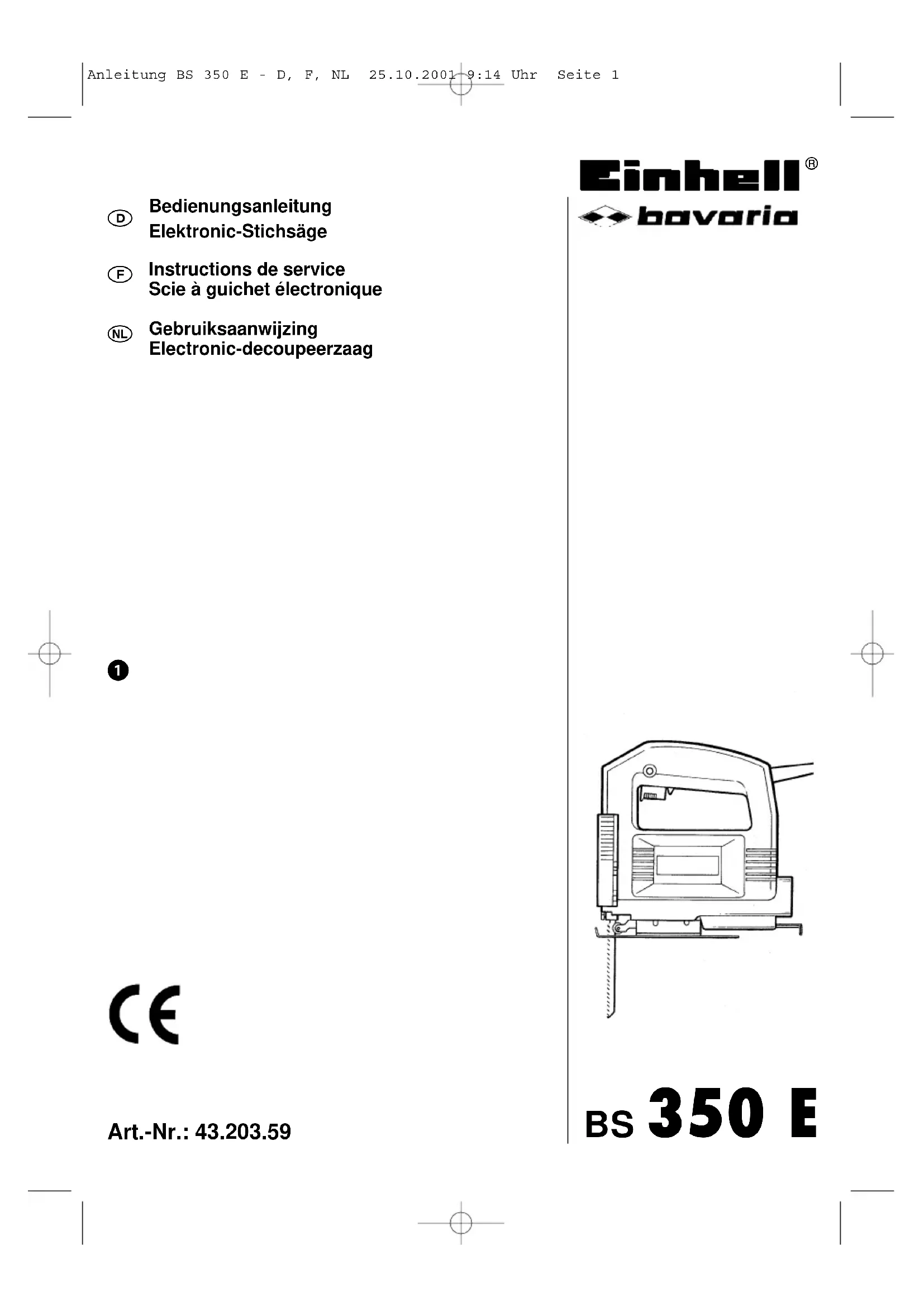 MODE D'EMPLOI BS 350 E Bavaria by Einhell