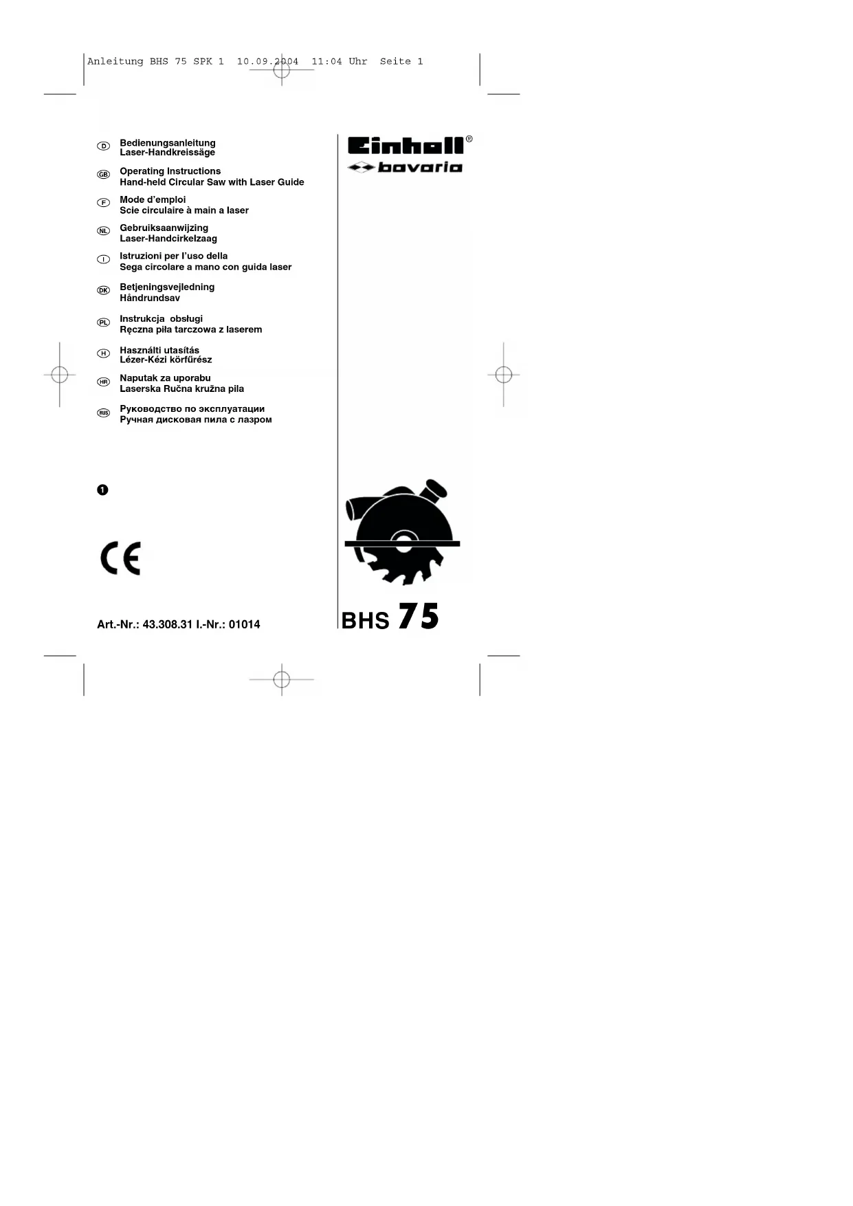 Retrouvez gratuitement la notice de l'appareil BHS 75 Bavaria by Einhell au format PDF.