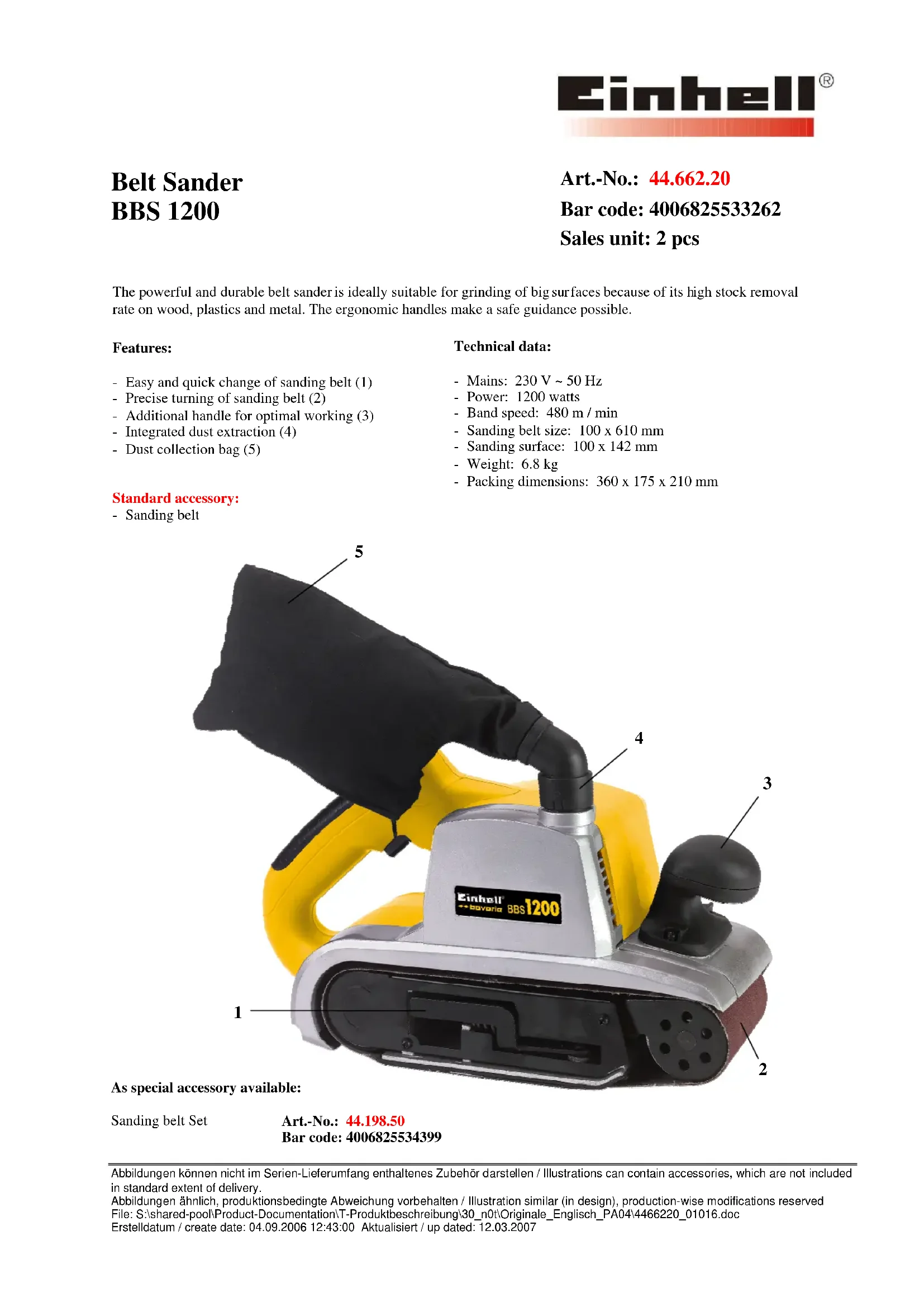 Retrouvez gratuitement la notice de l'appareil BBS 1200 Bavaria by Einhell au format PDF.