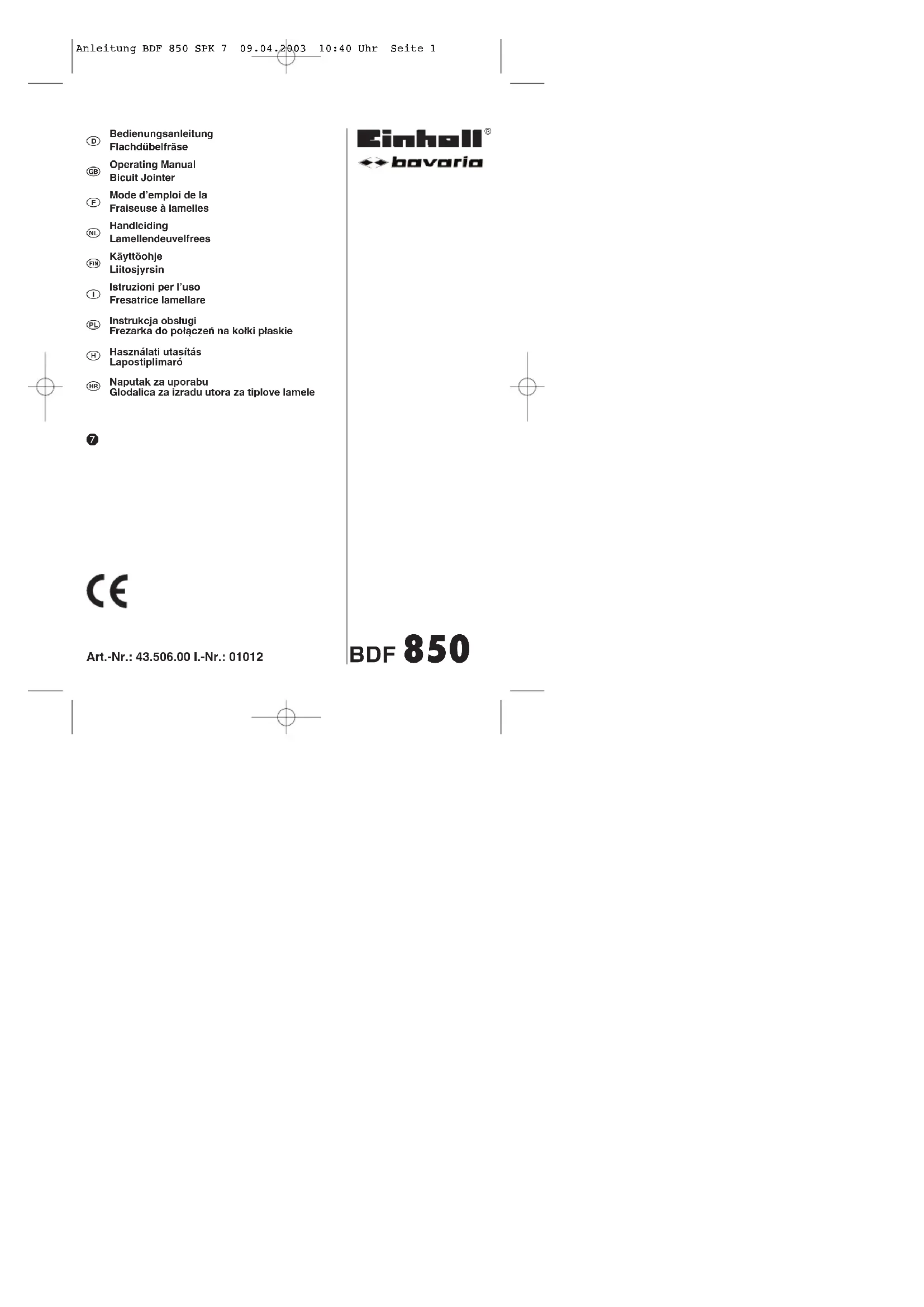 Retrouvez gratuitement la notice de l'appareil BDF 850 Bavaria by Einhell au format PDF.