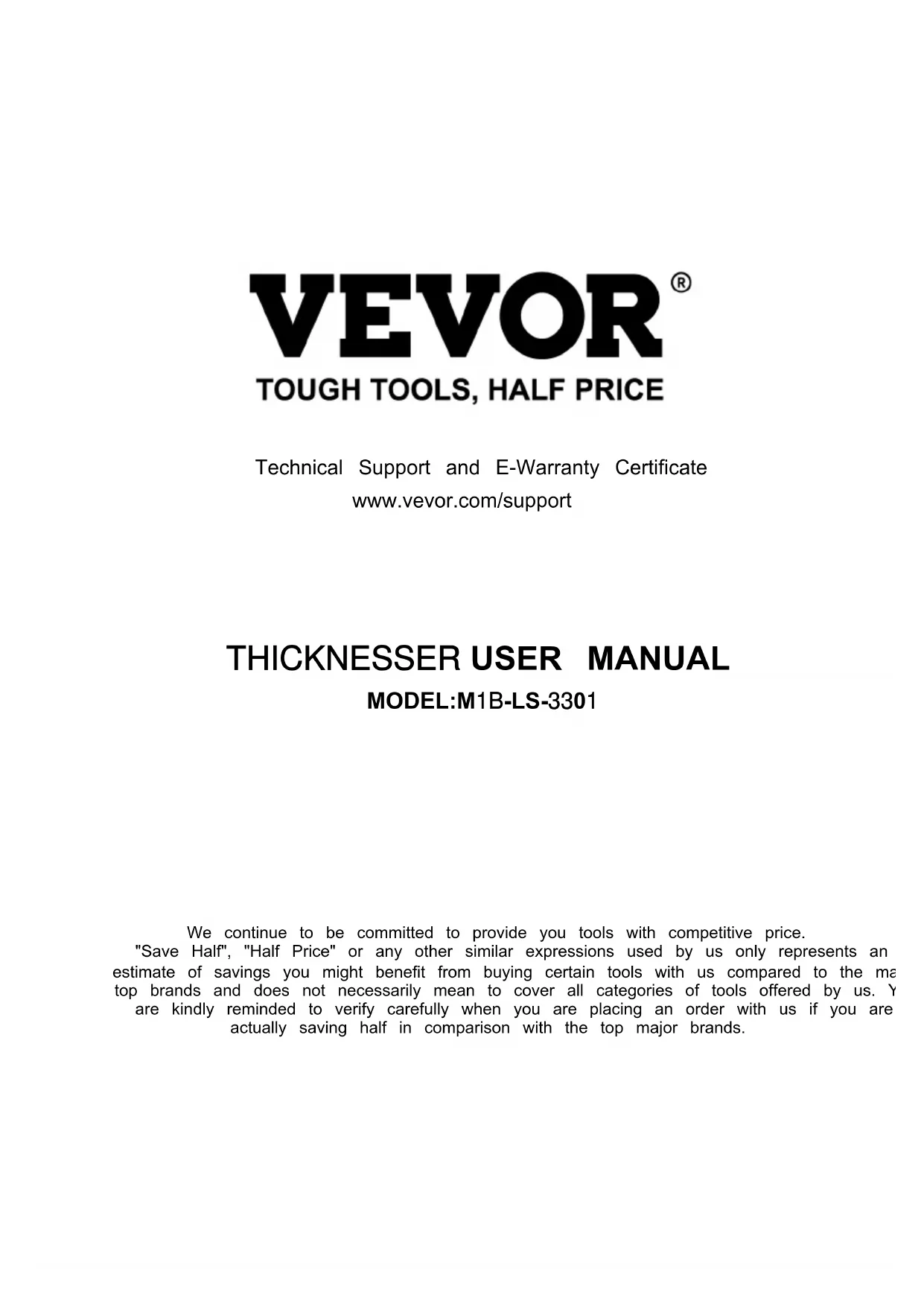 MODE D'EMPLOI Thickness Planer M1B-LS-3301 Vevor
