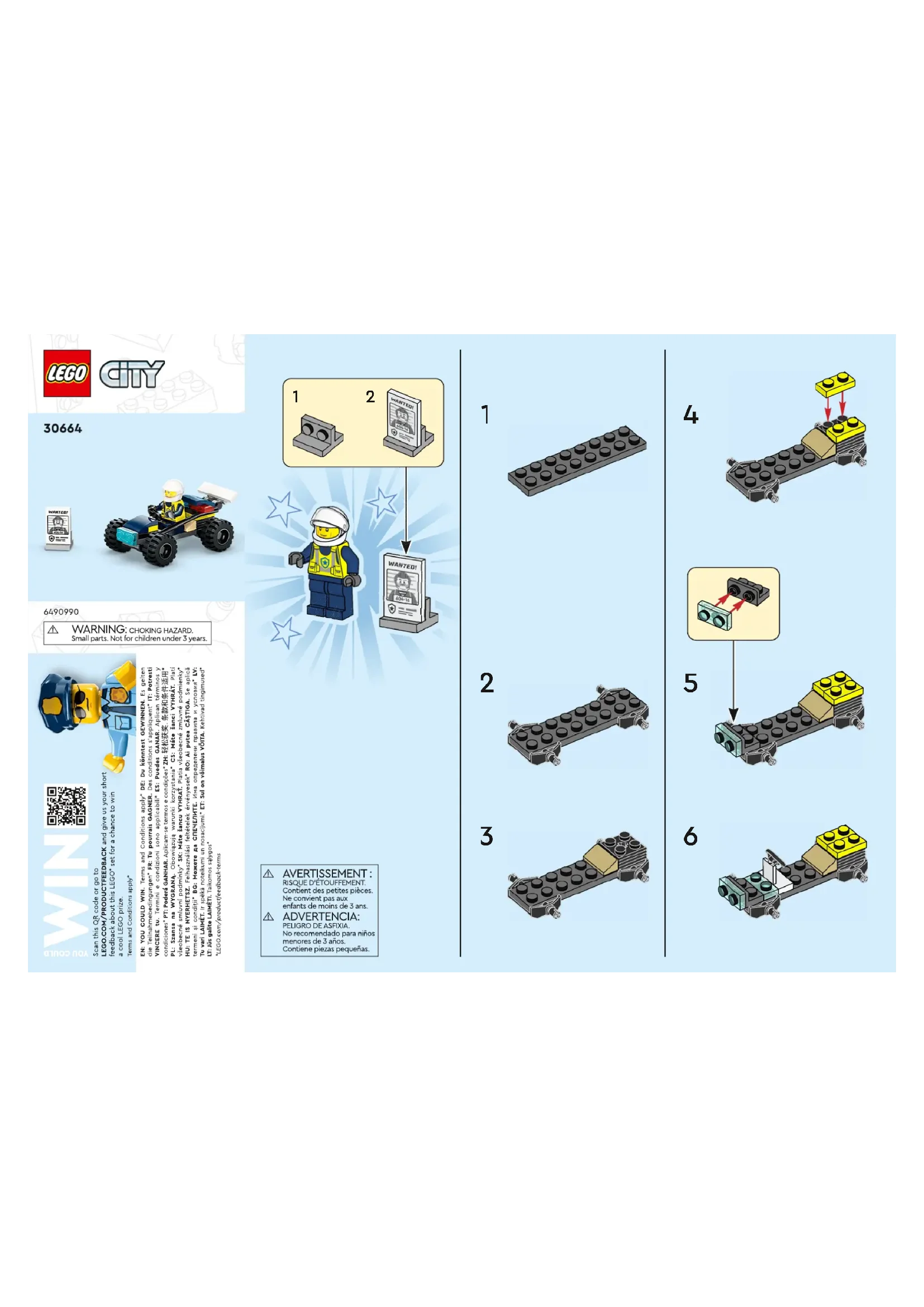 Pour assembler le set LEGO City 30664, suivez les instructions fournies dans le livret inclus dans la boîte. Les étapes sont numérotées et faciles à suivre.