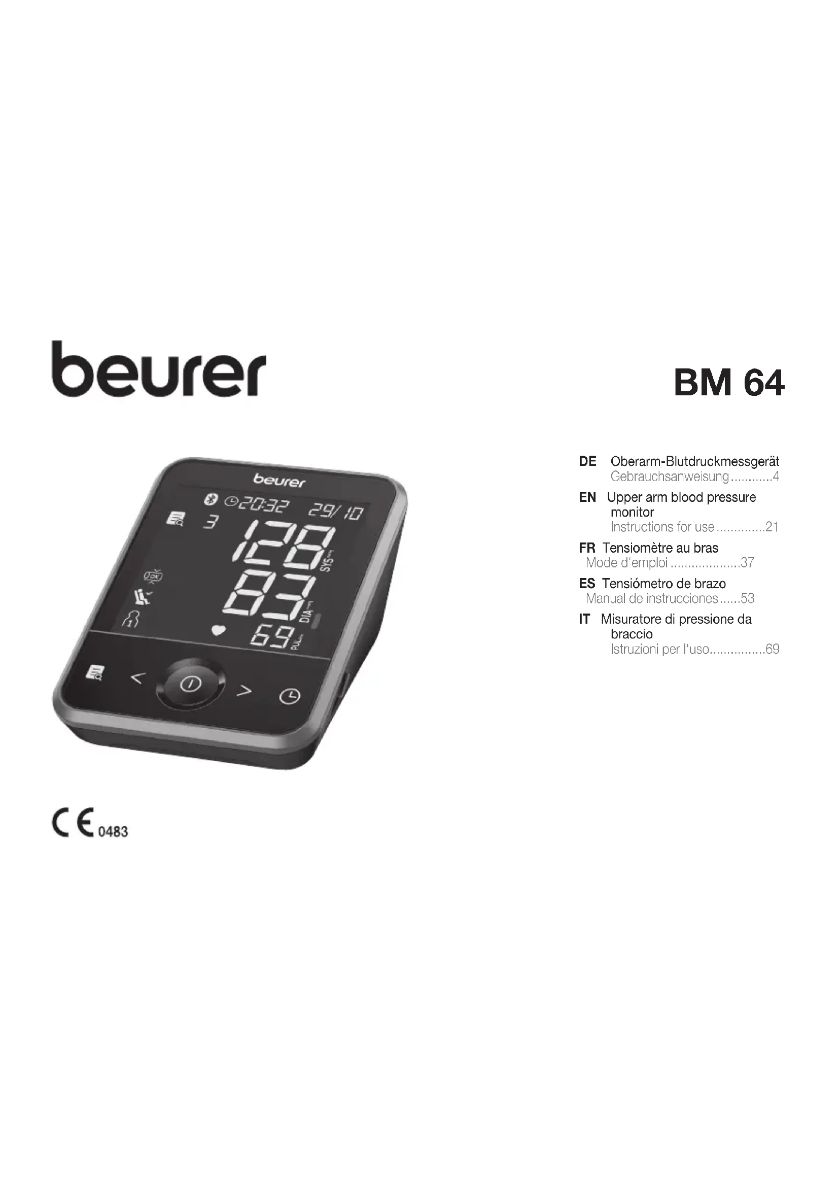 BM 64 - Tensiomètre BEURER - Notice d'utilisation et mode d'emploi gratuit