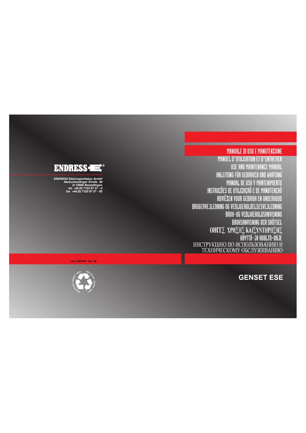 ESE 604 DYS DI - Générateur Endress - Notice d'utilisation et mode d'emploi gratuit