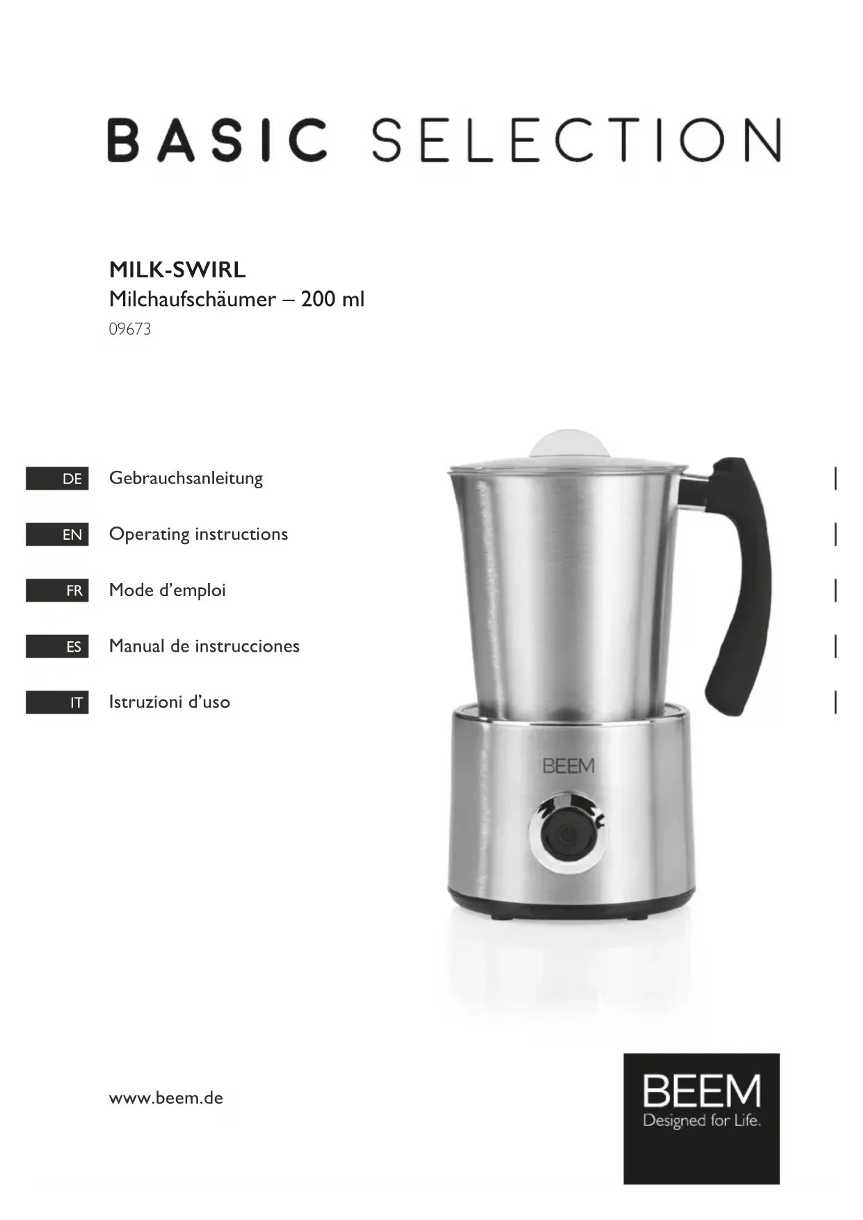 Milk-Swirl - Mousseur à lait BEEM - Notice d'utilisation et mode d'emploi gratuit