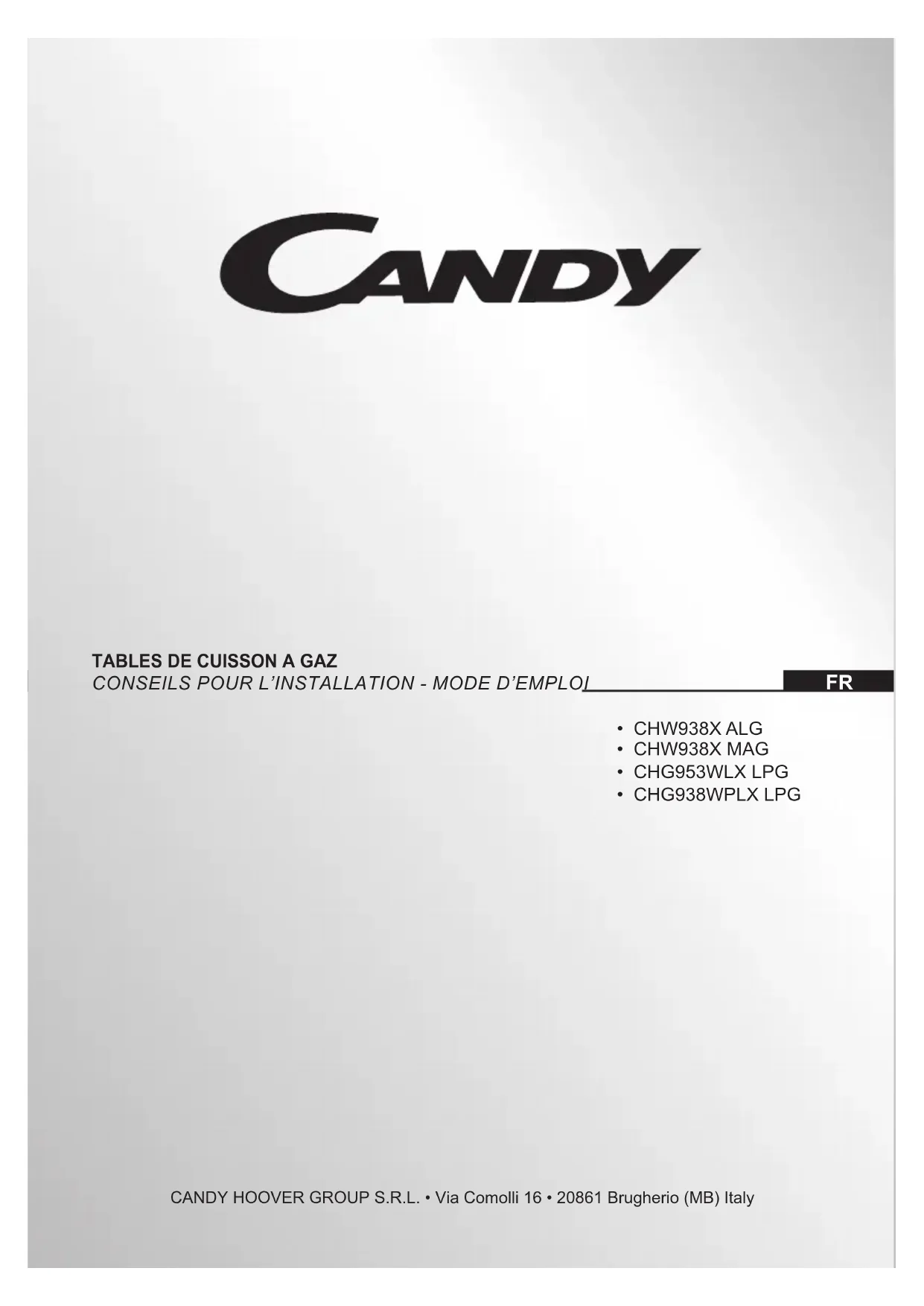 Retrouvez gratuitement la notice de l'appareil CHG938WPLX LPG CANDY au format PDF.
