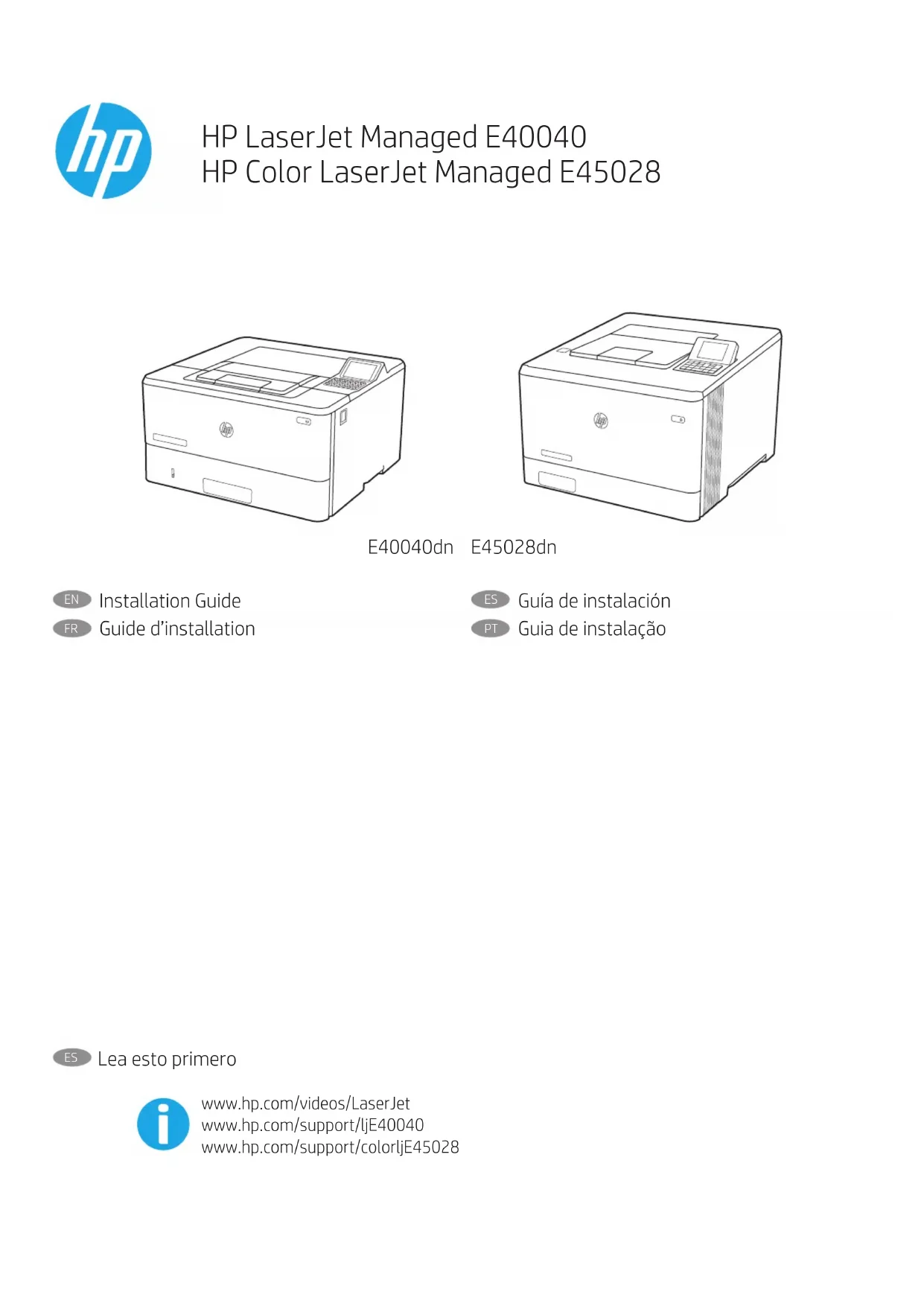 Retrouvez gratuitement la notice de l'appareil Color LaserJet Managed E45028 HP au format PDF.
