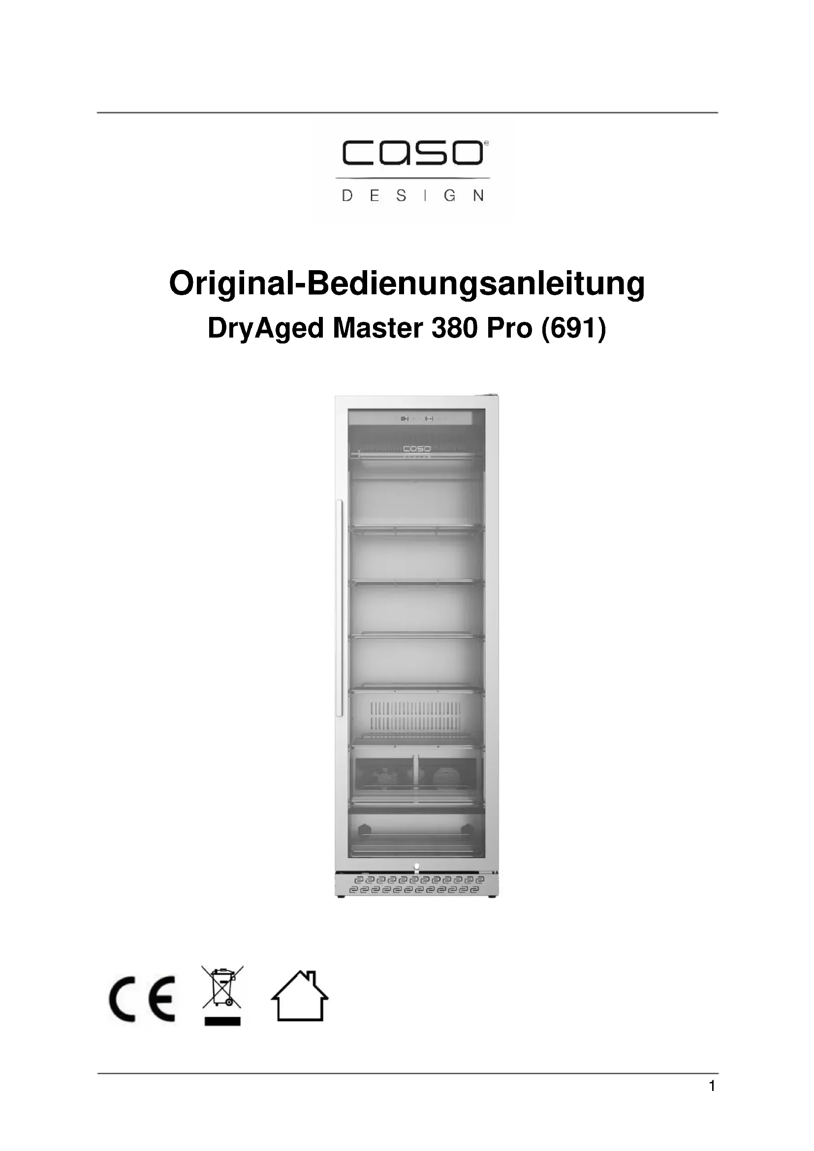 Load per shelf 20 kg Load per hanging rack 80 kg www.caso-design.de51 Mode d'emploi original DryAged Master 380 Pro (691)52 23 Mode d´emploi : Généralités Veuillez lire les indications de ce manuel afin de vous familiariser rapidement avec l'appareil et afin de pouvoir utiliser l'ensemble de ses fonctions. Votre appareil vous sera fidèle de nombreuses années si vous l'utilisez et l'entretenez conformément. Nous vous souhaitons beaucoup de plaisir lors de son utilisation.