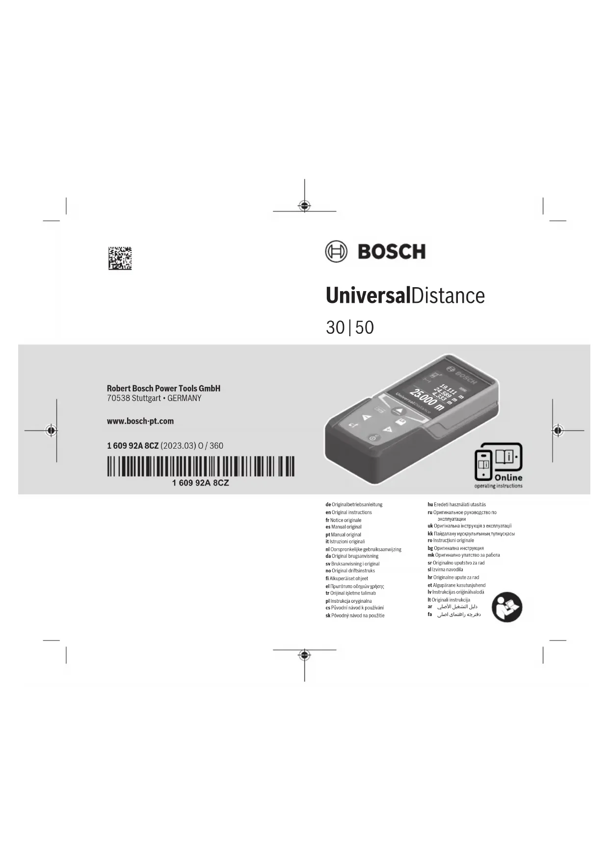Retrouvez gratuitement la notice de l'appareil UniversalDistance 30 BOSCH au format PDF.