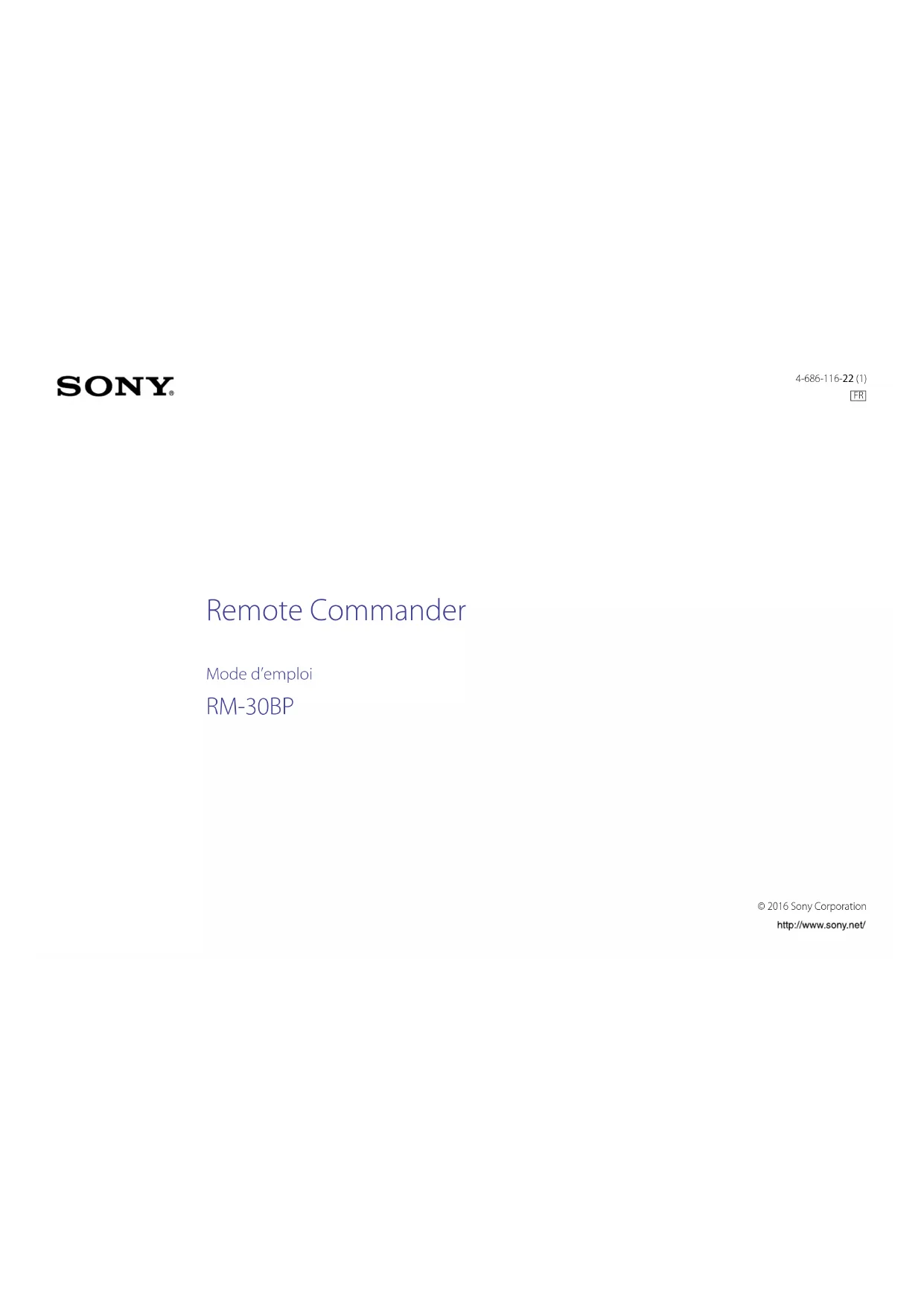 Téléchargez la notice de votre Télécommande au format PDF gratuitement ! Retrouvez votre notice RM-30BP - SONY et reprennez votre appareil électronique en main. Sur cette page sont publiés tous les documents nécessaires à l'utilisation de votre appareil RM-30BP de la marque SONY.