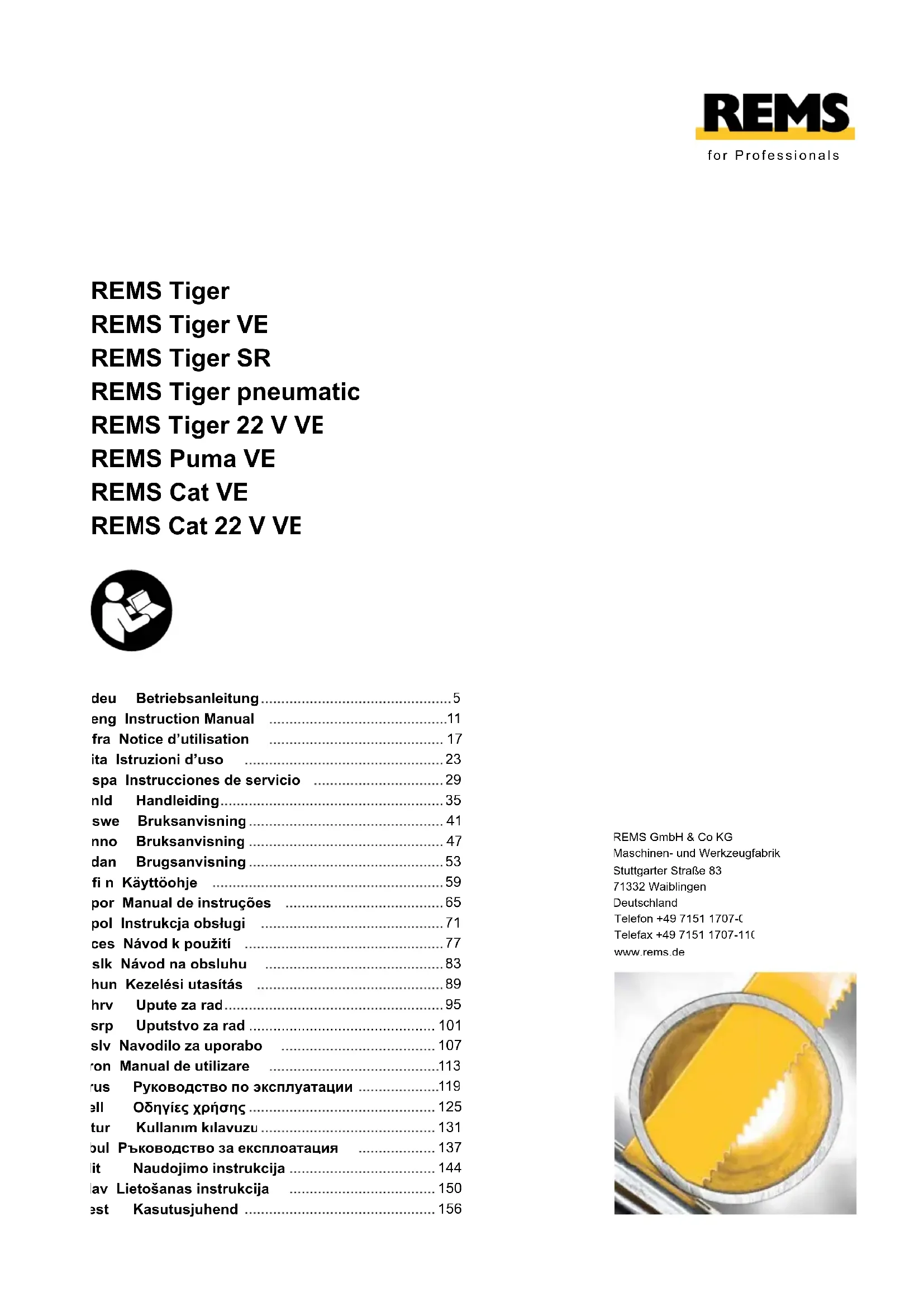 Listes de pièces: voir www.rems.de