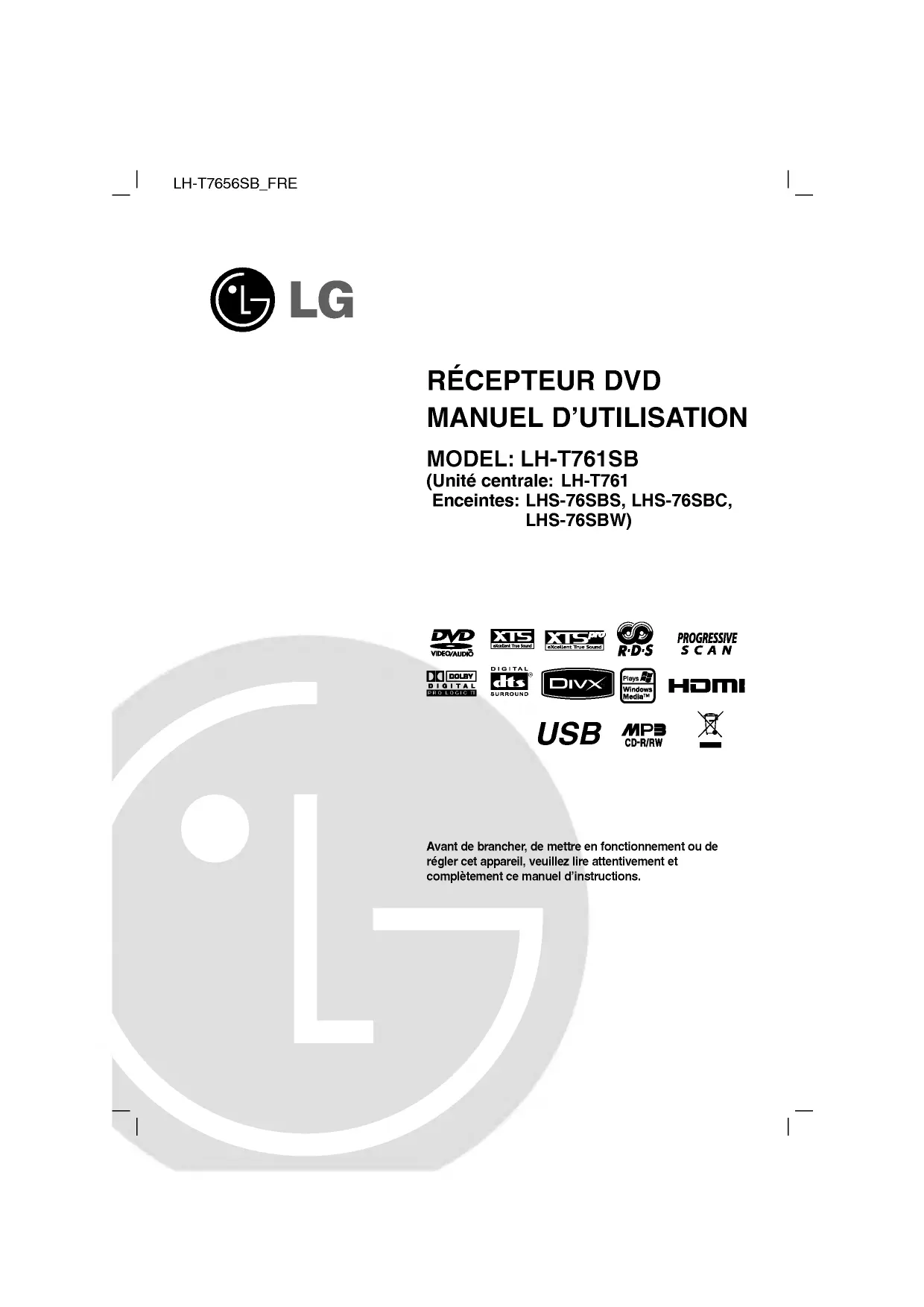 (Unité centrale: LH-T761 Enceintes: LHS-76SBS, LHS-76SBC, LHS-76SBW) 2ES Hom USB m2 À Avant de brancher, de mettre en fonctionnement ou de régler cet appareil, veuillez lire attentivement et complètement ce manuel d'instructions.