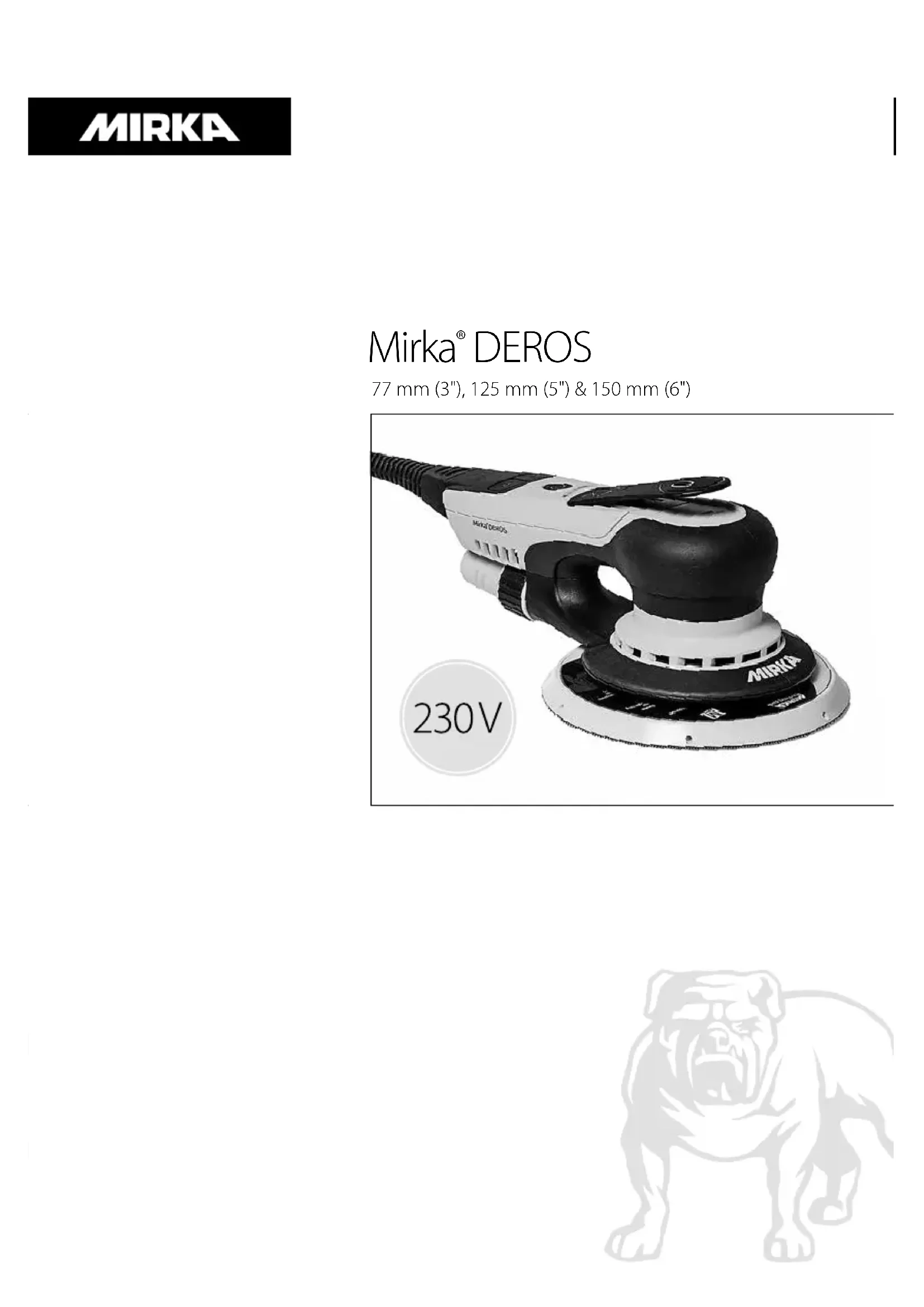 - Les réglementations nationales et locales Important Lire attentivement ces consignes de sécurité et d’utilisation avant de mettre en service, de faire fonctionner ou d’assurer l’entretien de cet outil. Conserver ces consignes dans un lieu sûr et accessible. Équipement de protection individuelle requis Attention: Situation potentiellement dangereuse pouvant provoquer la mort ou de graves blessures et/ou des dommages matériels. Attention: Situation potentiellement dangereuse pouvant provoquer des blessures légères ou modérées et/ou des dommages matériels. Traduction des instructions originales. Nous nous réservons le droit d’apporter des modications à ce manuel, à tout moment et sans avis préalable.80 Mirka® DEROS • 77 mm (3"), 125 mm (5") & 150 mm (6") • 230 V Mirka® DEROS • 77 mm (3"), 125 mm (5") & 150 mm (6") • 230 V 81