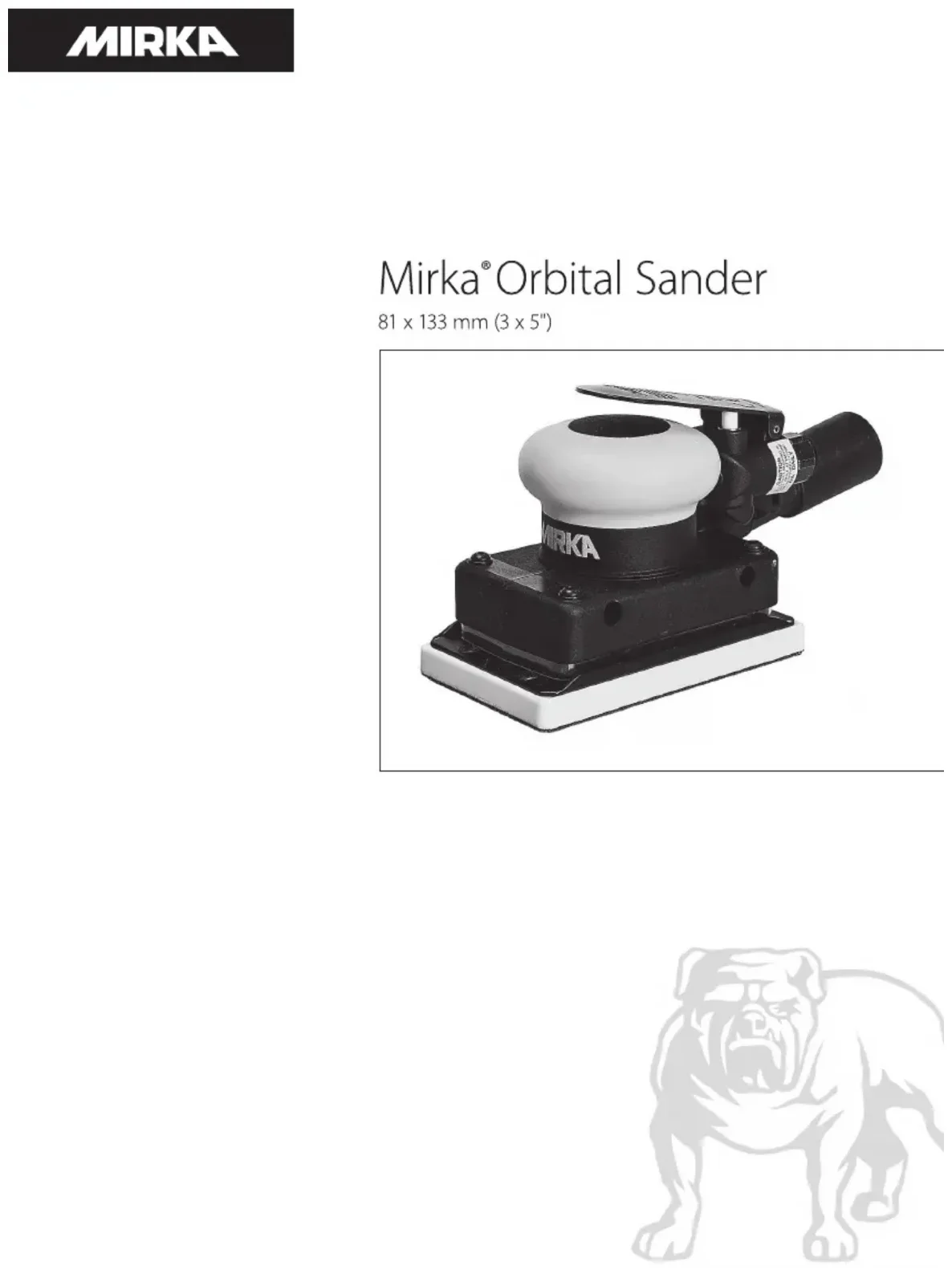 15) Si l’outil semble mal fonctionner, retirez celui-ci de l’utilisation immédiatement et organisez un entretien et une réparation. 16) Ne laissez pas l’outil en vitesse libre sans prendre de précautions an de protéger toutes personnes ou objets de la perte des tampons abrasifs. Système de conduites en boucle fermée orienté dans le sens de l'écoulement d’air Canalisation de purge Vers l'outil Filtre Vanne de drainage Régulateur Lubrificateur Robinet à bille Débit d’air Dessiccateur d'air Compresseur d’air et réservoir Tuyau d’air Vers le raccord pour l’outil Robinet à bille Robinet à bille46 Spécications soumises à modications sans préavis. *Les valeurs indiquées dans le tableau proviennent de tests réalisés en laboratoire conformément aux codes et normes cités et ne sufsent pas à l’évaluation des risques. Les valeurs mesurées sur un lieu de travail particulier peuvent être supérieures aux valeurs déclarées. Les valeurs d’exposition réelles et la quantité de risque ou de dommages subie par une personne est unique pour chaque situation et dépend de l’environnement, de la façon dont l’individu travaille, du matériau particulier sur lequel s’effectue le travail, de la conception du poste de travail ainsi que de la durée d’exposition et de la condition physique de l’utilisateur. KWH Mirka, Ltd. ne peut pas être tenu pour responsable des conséquences de l’utilisation des valeurs déclarées au lieu des valeurs réelles d’exposition pour toute évaluation de risque individuelle. De plus amples renseignements sur la santé et la sécurité au travail peuvent être obtenus sur les sites Internet ci-dessous : https://osha.europa.eu/en(Europe) http://www.osha.gov (USA) Conguration/ caractéristiques techniques du produit Ponceuses orbitales 10.000 opm Conguration et caractéristiques techniques du produit : 10.000 opm 81 mm x 133 mm (3 po. x 5 po) Ponceuse électrique aléatoire Remarque : Tous les appareils à aspiration utilisent des raccords de tuyaux d’aspiration standard de Ø 28 mm (1 po.). Des raccords de Ø 19 mm (3/4 po.) sont également disponibles. Excen- tricité Type d’aspiration Taille du tampon