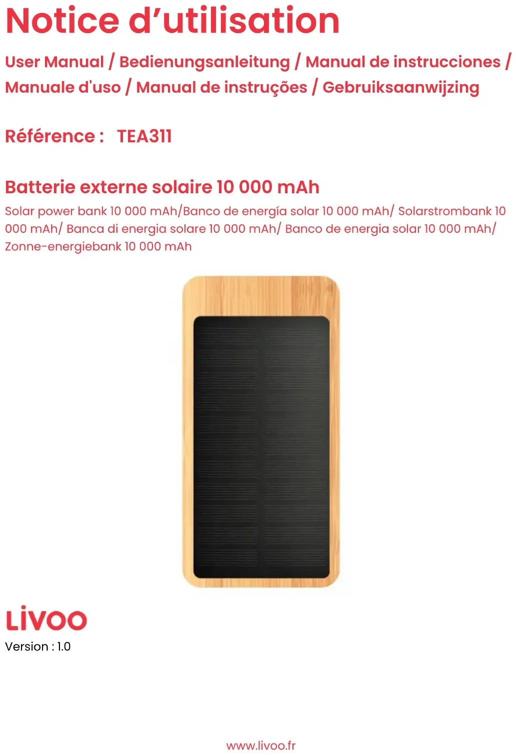 TEA311 - Batterie portable LIVOO - Notice d'utilisation et mode d'emploi gratuit