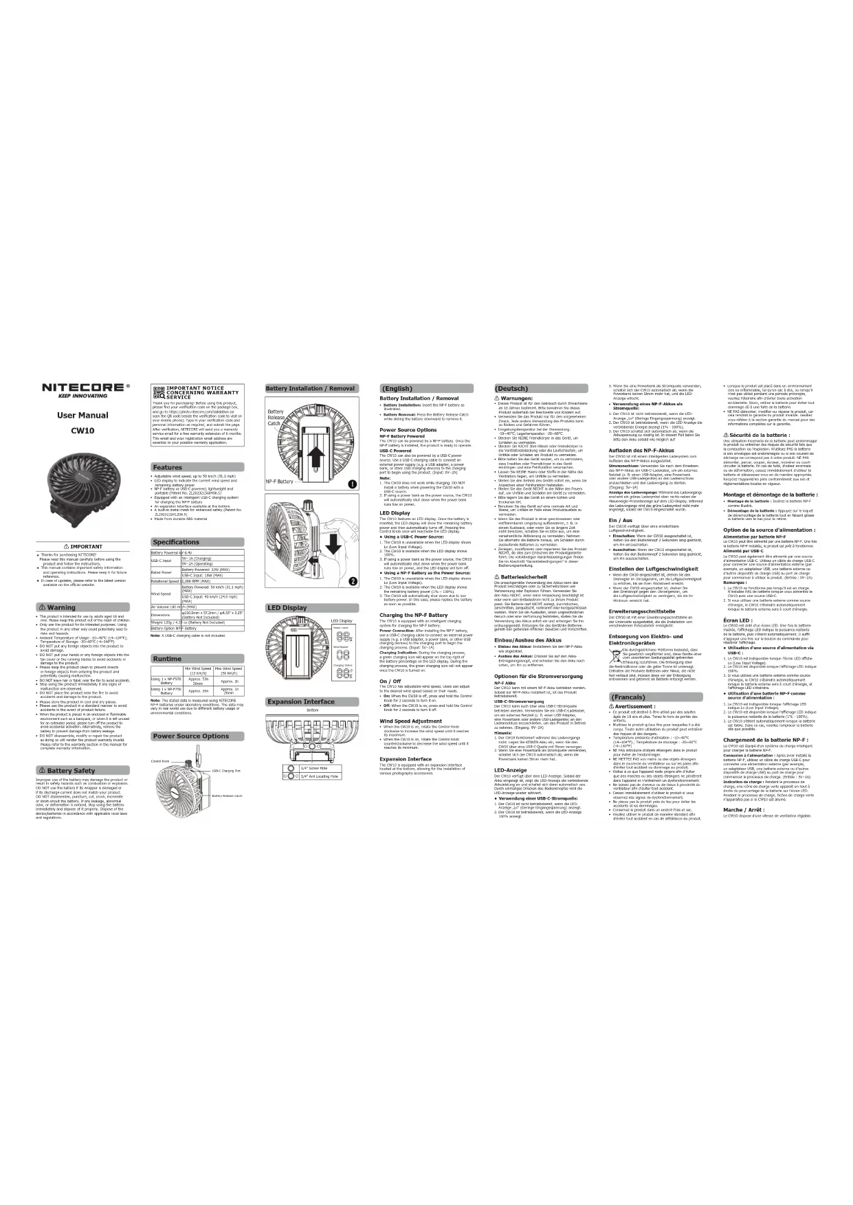 CW10 - Ventilateur Nitecore - Notice d'utilisation et mode d'emploi gratuit