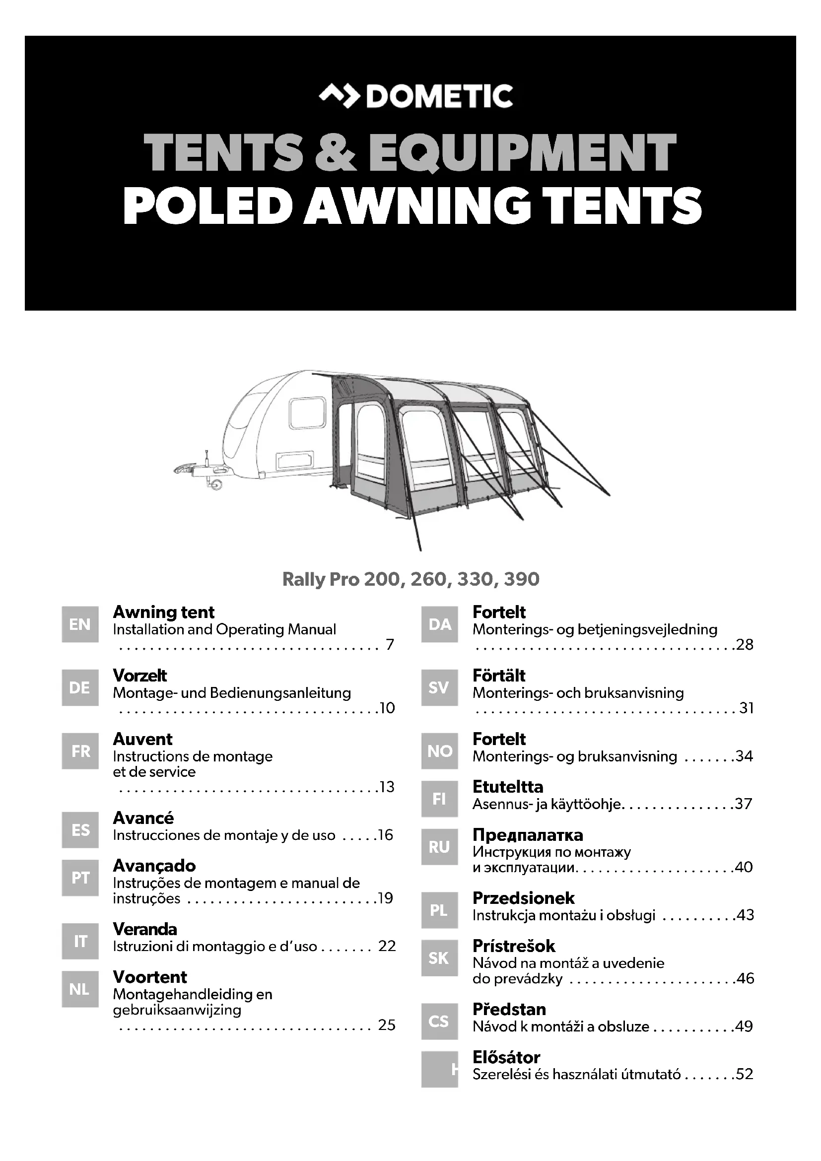 Rally Pro 200 - Tente DOMETIC - Notice d'utilisation et mode d'emploi gratuit
