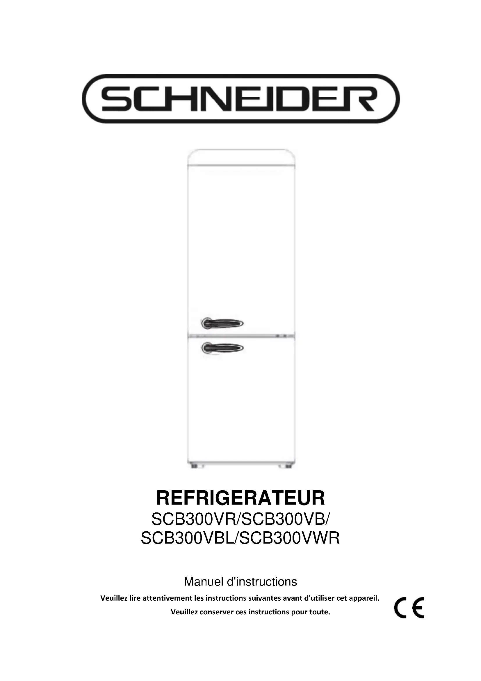 SCCB300VCR - Réfrigérateur SCHNEIDER - Notice d'utilisation et mode d'emploi gratuit