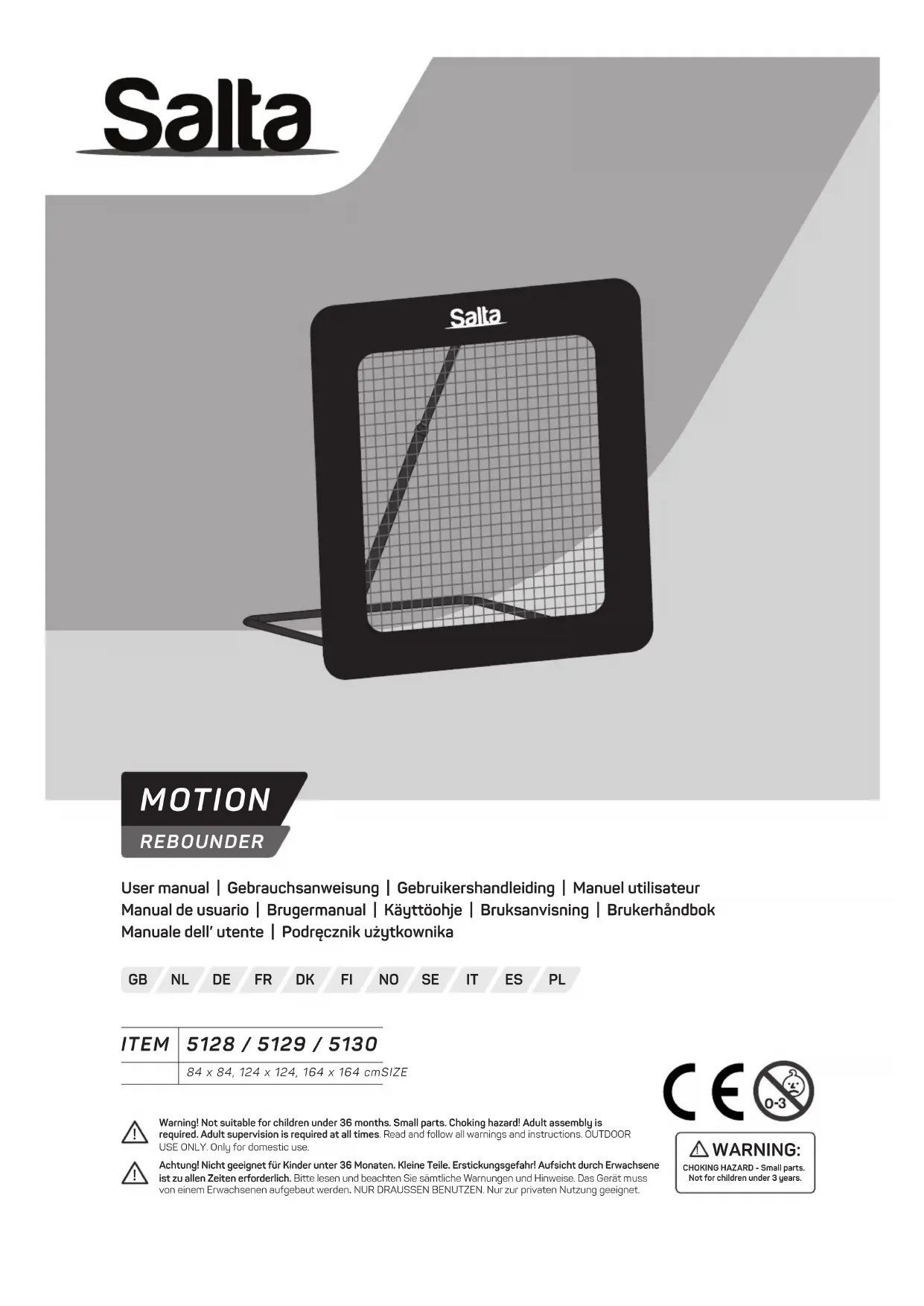Pour plus d’informations sur la garantie, veuillez consulter notre site Web : www.salta.com. La garantie peut être demandée sur présentation de la facture d’origine. La garantie ne s’applique qu’aux vices de matière ou de main d’œuvre relatifs au produit ou à ses composants. Garantie : Cage : 2 ans Autres pièces : 6 mois La garantie expire si : – Le produit est utilisé de manière incorrecte, négligente ou inappropriée. – Le produit n’est pas installé conformément aux instructions/maintenance. – Des défauts causés par des influences extérieures (par exemple, influences climatiques telles que l’altération normale due aux rayons UV ou l’usure normale). – Des modifications non professionnelles sont apportées au produit. – Le produit est utilisé pour le marché public ou récréatif. – Les pièces défectueuses ont été remplacées par des pièces Salta non d’origine. FR27 INTRODUKTION Før du begynder at bruge rebounder, skal du sørge for omhyggeligt at gennemlæse alle oplysningerne i denne manual. Som med enhver anden form for fysisk fritidsaktivitet kan deltagerne komme til skade. Med henblik på at mindske risikoen for skader skal du sørge for at træffe passende sikkerhedstiltag og følge vores tips.